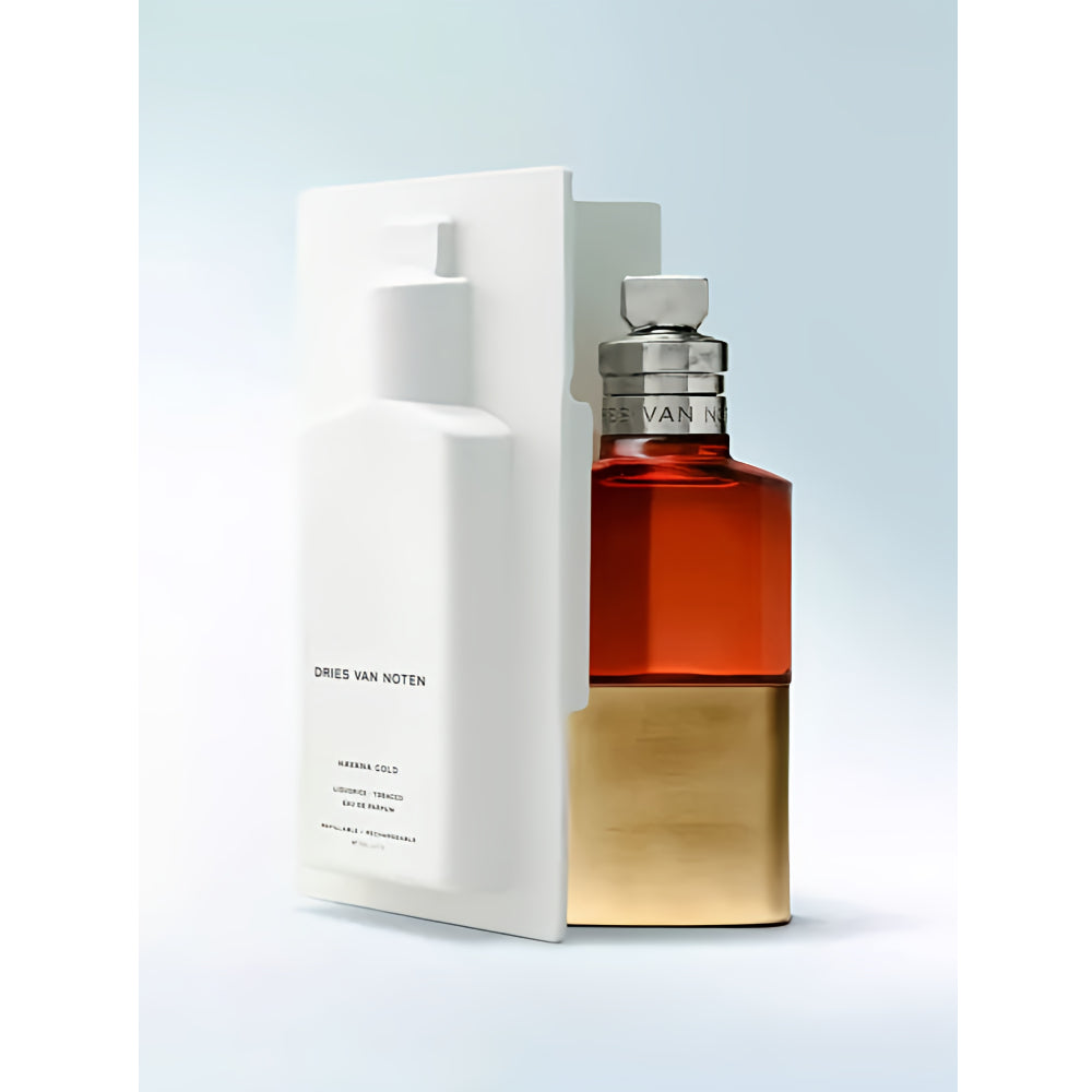 عطر هافانا جولد من دريس فان نوتن هو عطر فاخر وجريء، يجسد دفء وجمال أمسيات هافانا الساحرة. يمزج هذا العطر للجنسين بين نفحات حلوة ودخانية مع لمسات من عرق السوس وأوراق التبغ وحبوب التونكا المحمصة. يفتتح العطر بنفحات منعشة من اليوسفي واليانسون النجمي، تليها قاعدة عميقة من القرفة والجاوي الراتنجي. أما القاعدة فتترك انطباعًا دائمًا من الجلد والعنبر والتوابل الدافئة.