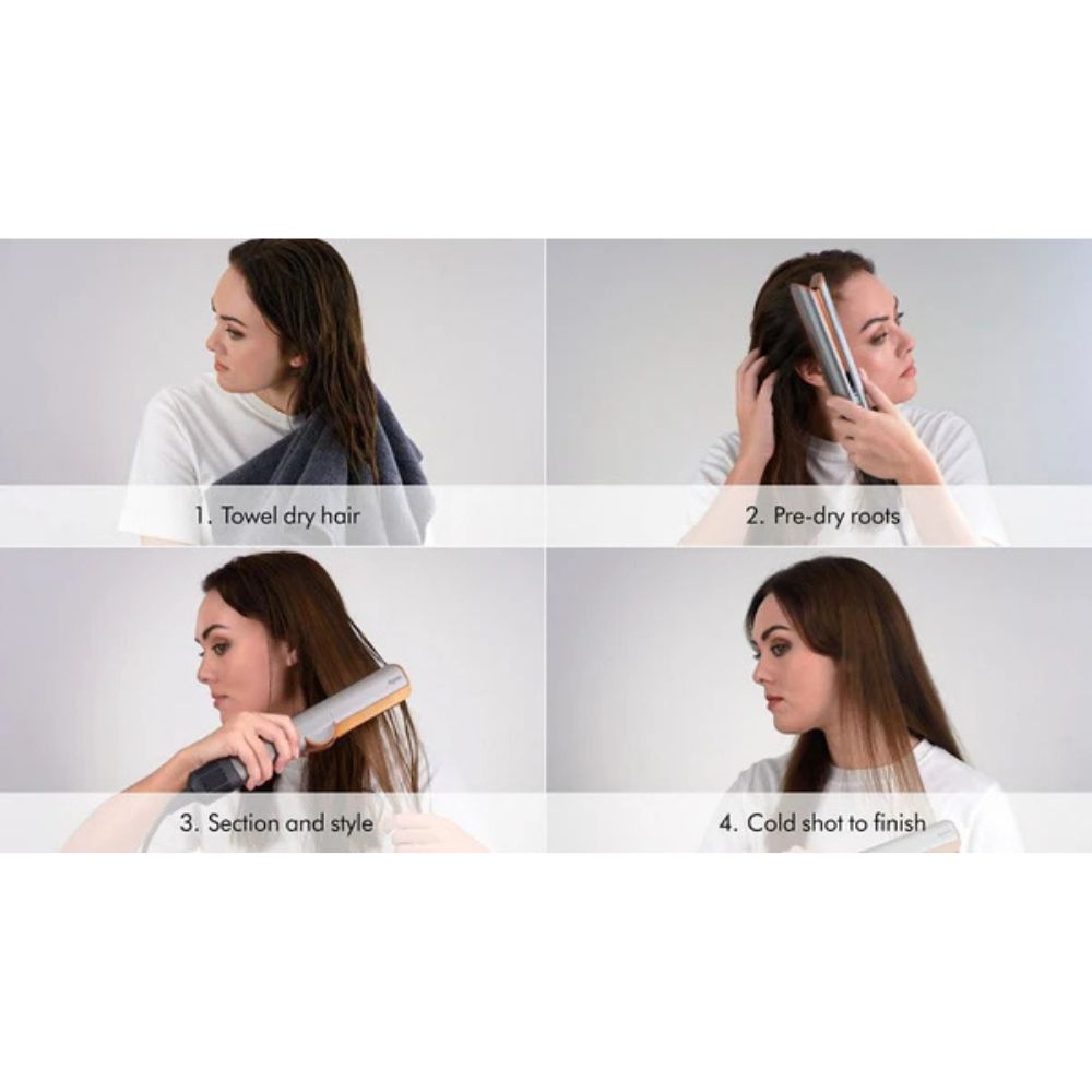 مكواة الشعر دايسون إيرستريت باللون الأحمر المخملي الذهبي هي أداة تصفيف ثورية للشعر الرطب والجاف، مصممة لتمليس الشعر دون استخدام حرارة زائدة . بفضل تقنية إيرفلو من دايسون ، تعمل هذه المكواة المتطورة على تجفيف وتصفيف الشعر في آنٍ واحد، لتمنحكِ نتائج ناعمة وخالية من التجعد مع الحفاظ على كثافة الشعر الطبيعية. تُعدّ إيرستريت مثالية لجميع أنواع الشعر، فهي تضمن تصفيفًا سريعًا وفعالًا بأقل ضرر ممكن ، مما يجعلها أداة أساسية للعناية العصرية بالشعر.