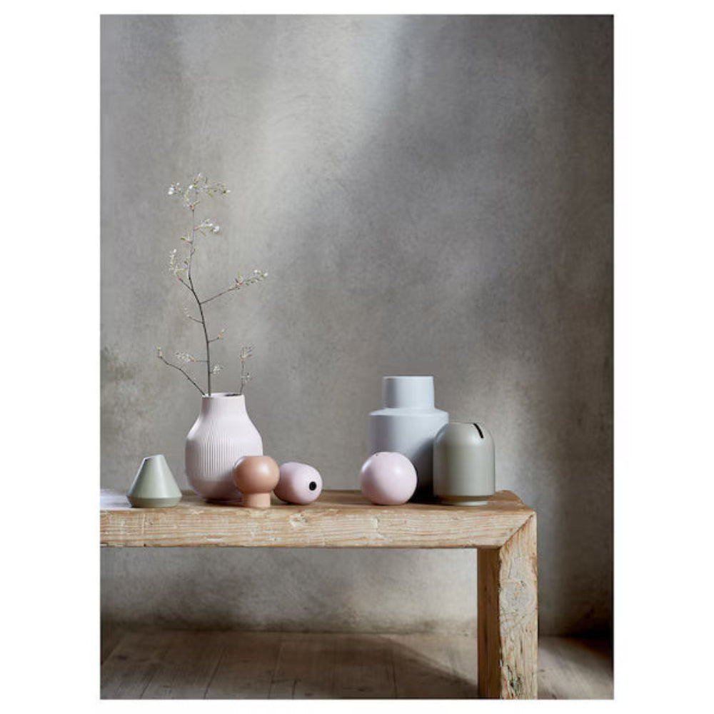 مصنوعة من الخزف الحجري ومطلية بطبقة زجاجية تفاعلية ملونة، تتميز كل مزهرية بمظهر فريد مصنوع يدويًا. وتُضفي الاختلافات الطبيعية في الطلاء الزجاجي سحرًا وتميزًا على كل قطعة.