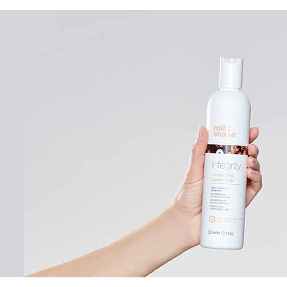 بلسم ميلك شيك إنتغريتي المغذي مصمم خصيصًا لترطيب وتغذية جميع أنواع الشعر مع الحفاظ على لونه. يحتوي بلسم ميلك شيك إنتغريتي المغذي على زبدة مورو العضوية لترطيب وتغذية الشعر.
