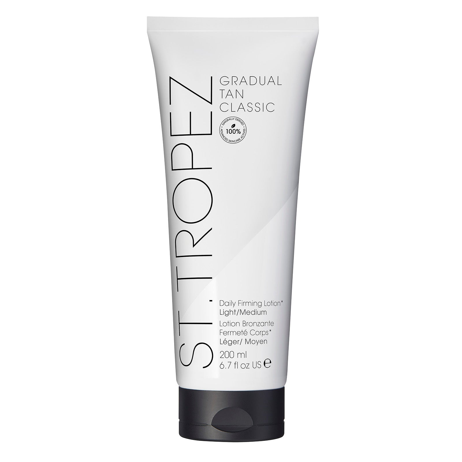 يتميز لوشن الجسم "سان تروبيه" للتسمير التدريجي، بتركيبته الخفيفة سريعة الامتصاص وغير اللزجة، مما يجعله الخيار الأمثل للحصول على سمرة رائعة وترطيب يدوم حتى 72 ساعة. يناسب هذا اللوشن جميع أنواع البشرة، فهو غني بمستخلصات مغذية للبشرة، مثل الطحالب البحرية لشد البشرة، وحمض الهيالورونيك عالي الوزن الجزيئي (للترطيب)، بالإضافة إلى زيوت بذور التوت الأزرق والتوت الأحمر الغنية بمضادات الأكسدة. أما بالنسبة للون البرونزي، فيعتمد على مُحفز تسمير طبيعي 100% يتطور خلال 4-8 ساعات ليمنحكِ لونًا برونزيًا فاتحًا إلى متوسطًا متجانسًا.