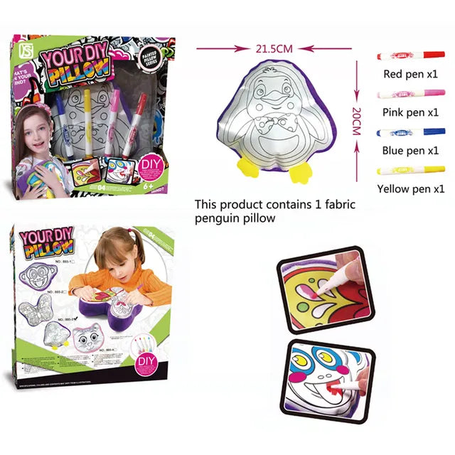 يستطيع الأطفال الرسم مباشرةً على القماش المقطوع مسبقًا باستخدام ألوان آمنة وقابلة للغسل، ثم حشو وخياطة صديقهم البطريق (بمساعدة إذا لزم الأمر) ليصبح وسادة ناعمة ومريحة. خلال هذه العملية، سيكتشفون كيفية امتصاص الأقمشة المختلفة للألوان، وكيفية ترابط الأنماط والأشكال، وحتى كيفية صنع الألعاب القطنية - مما يُعرّفهم على المبادئ الأساسية لهندسة التصميم وعلم النسيج بأسلوب ممتع ومناسب للأطفال.