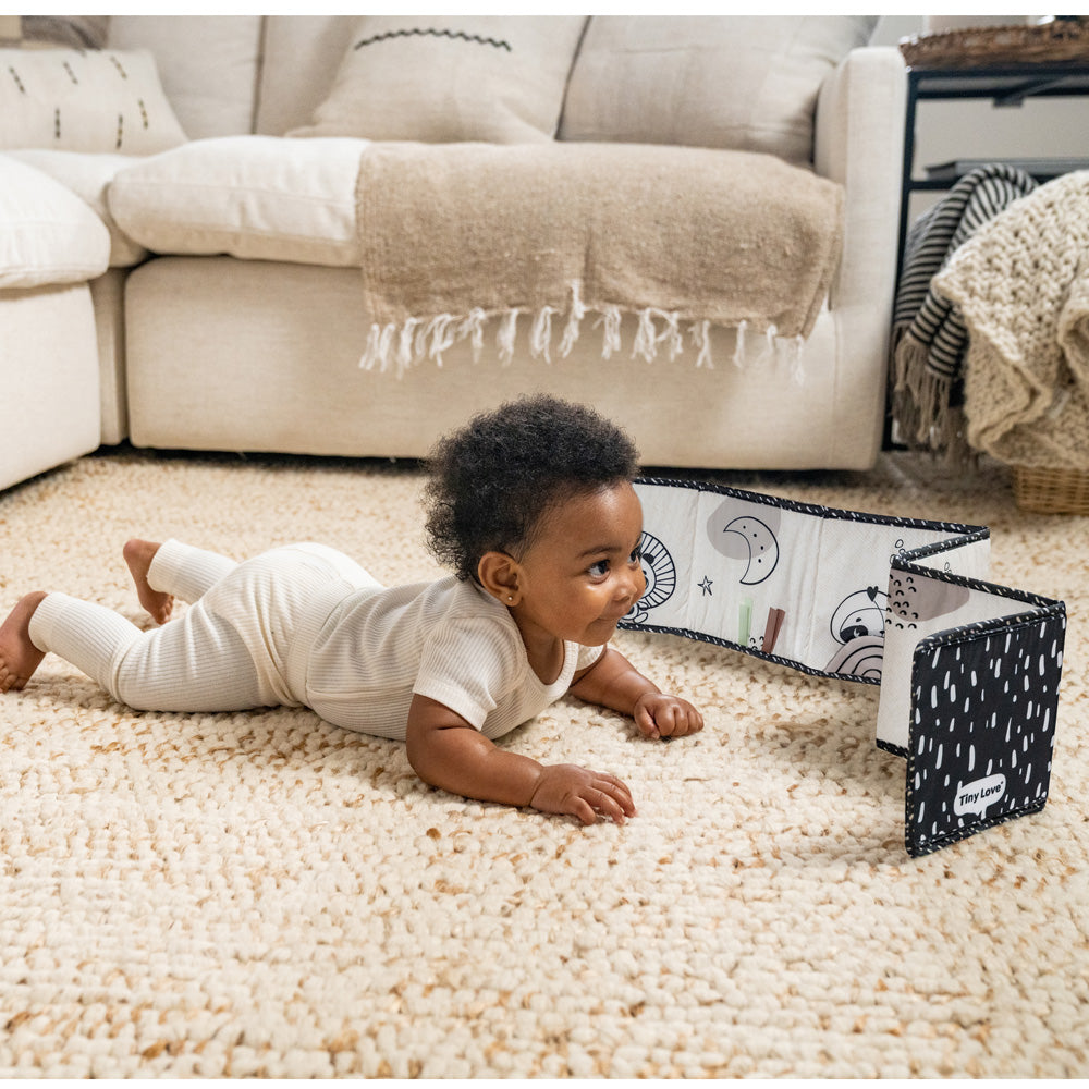 عززي نمو بصر طفلكِ حديث الولادة مع كتاب "تايني لوف" ذي الوجهين، المزخرف بالأبيض والأسود ، والمصمم خصيصًا لدعم بصر الطفل منذ الأيام الأولى. يتميز هذا الكتاب القابل للطي بنقوش عالية التباين بالأبيض والأسود على أحد وجهيه، وصور ملونة أكثر تفصيلًا على الوجه الآخر، وهو مثالي لوقت الاستلقاء على البطن، أو اللعب بجانب سرير الطفل، أو حتى للعب أثناء التنقل.