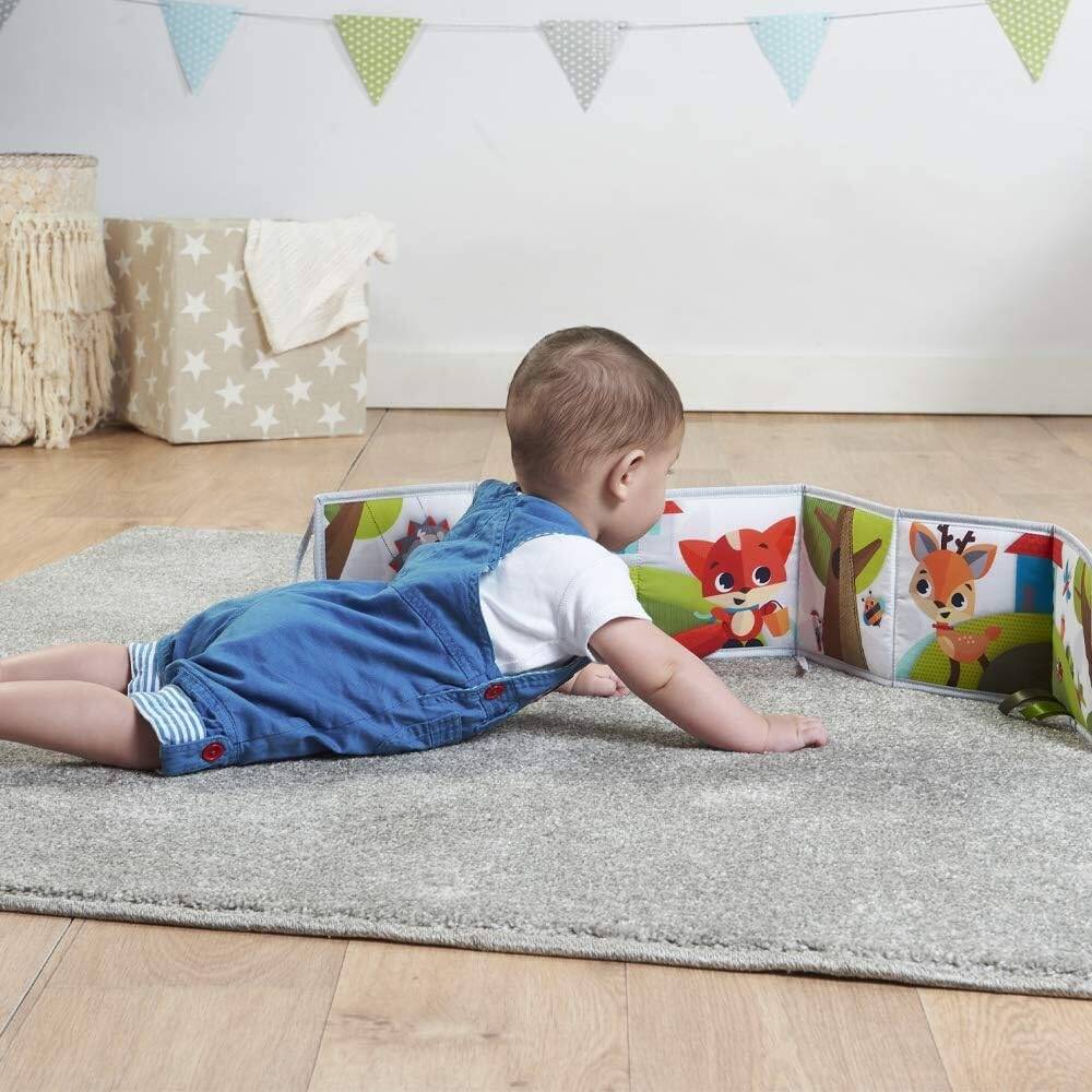 عناصر تفاعلية : تتضمن أقمشة مجعدة ومرآة وصفحات ذات ملمس خاص لإشراك حواس طفلك ومساعدته على اكتشاف ملمس وأصوات وألوان جديدة.