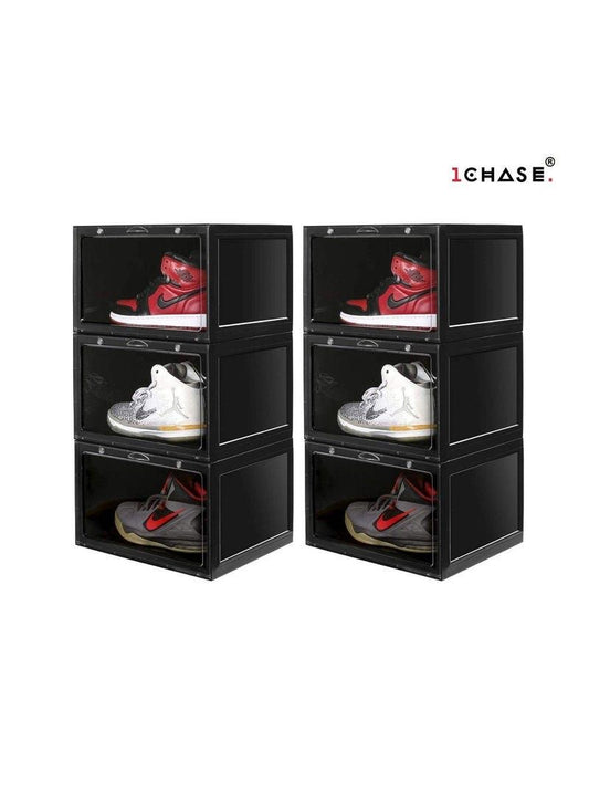 1CHASE Stackable Shoe Storage Box, Side Open Black 6Pcs SetVendor: 1 ChaseThe 1 Chase Big Size High-Quality Plastic Shoe Box offers a convenient and efficient solution for storing and organizing your shoes, keeping them safe and easily accessible. This product includes 1 piece with a 6-piece capacity. Key Features: Size & Dimensions: Each box has...