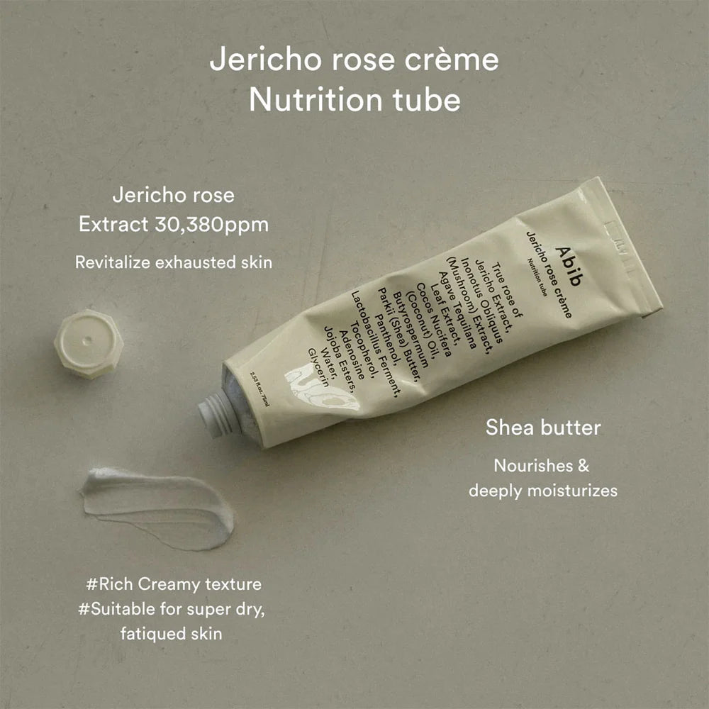 Bring life back to tired, dehydrated skin with Abib Jericho Rose Crème Nutrition Tube — a deeply nourishing face cream powered by Jericho Rose extract, known for its remarkable ability to survive in extreme dryness. This ultra-rich formula helps replenish moisture, improve skin elasticity, and strengthen the skin barrier for a soft, radiant glow.