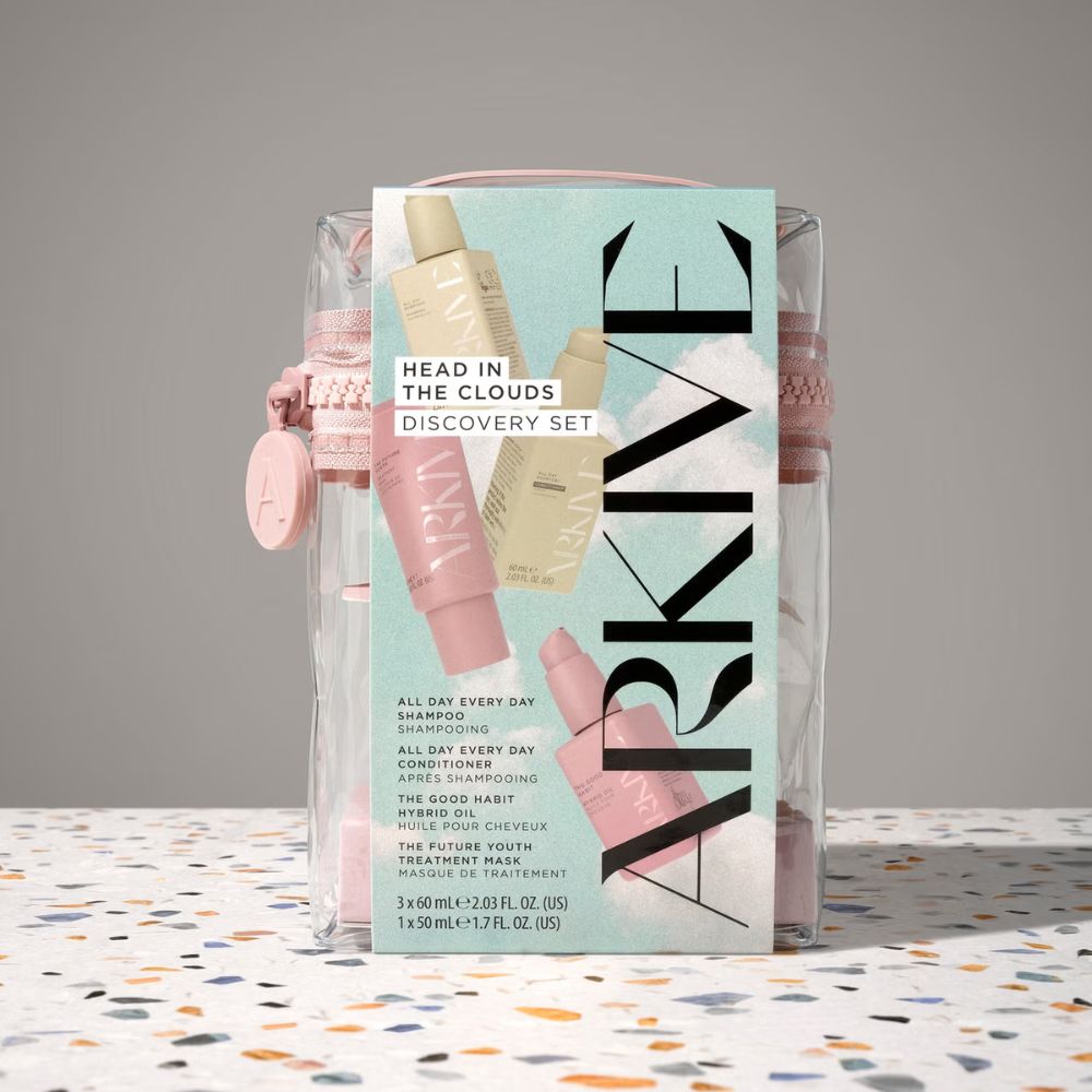 The ARKIVE Headcare Head in the Clouds Discovery Set is your perfect introduction to premium haircare. This thoughtfully curated set includes four essential formulas designed to nourish, hydrate, and revitalize your hair from scalp to ends. Each product is enriched with baobab extracts, known for their strengthening and revitalizing properties, while the serene fruity floral fragrance soothes the senses. Packaged in a convenient travel bag, this set is ideal for maintaining healthy, beautiful hair wherever you go.