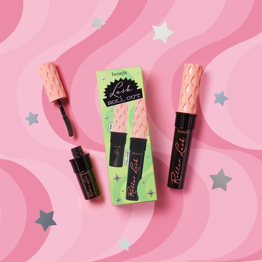 Achieve beautifully lifted and curled lashes with the Benefit Cosmetics Lash Roll Out Mascara Set, featuring both a full-size and mini-size Roller Lash Curling & Lifting Mascara. This dynamic duo effortlessly enhances your lashes with its innovative Hook βnβ Roll brush, delivering precision curl, lift, and definition. Perfect for everyday elegance or on-the-go touch-ups.