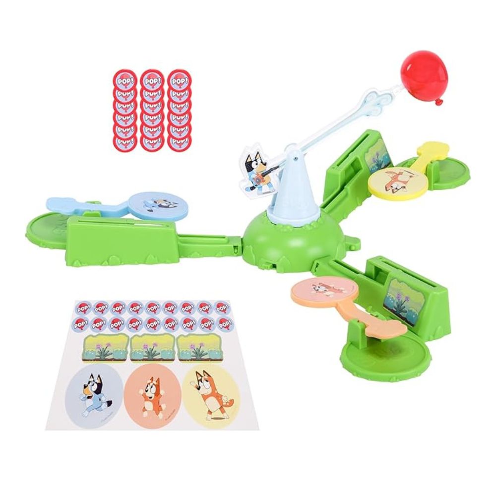 Bring the excitement of Bluey into your home with the Bluey Keepy Uppy Game! This action-packed game is designed for children aged 4 and up, allowing 2-3 players to engage in a fun-filled challenge. Use the character paddles to keep a motorized balloon soaring in the air while trying to avoid letting it hit your hedge. The game features: