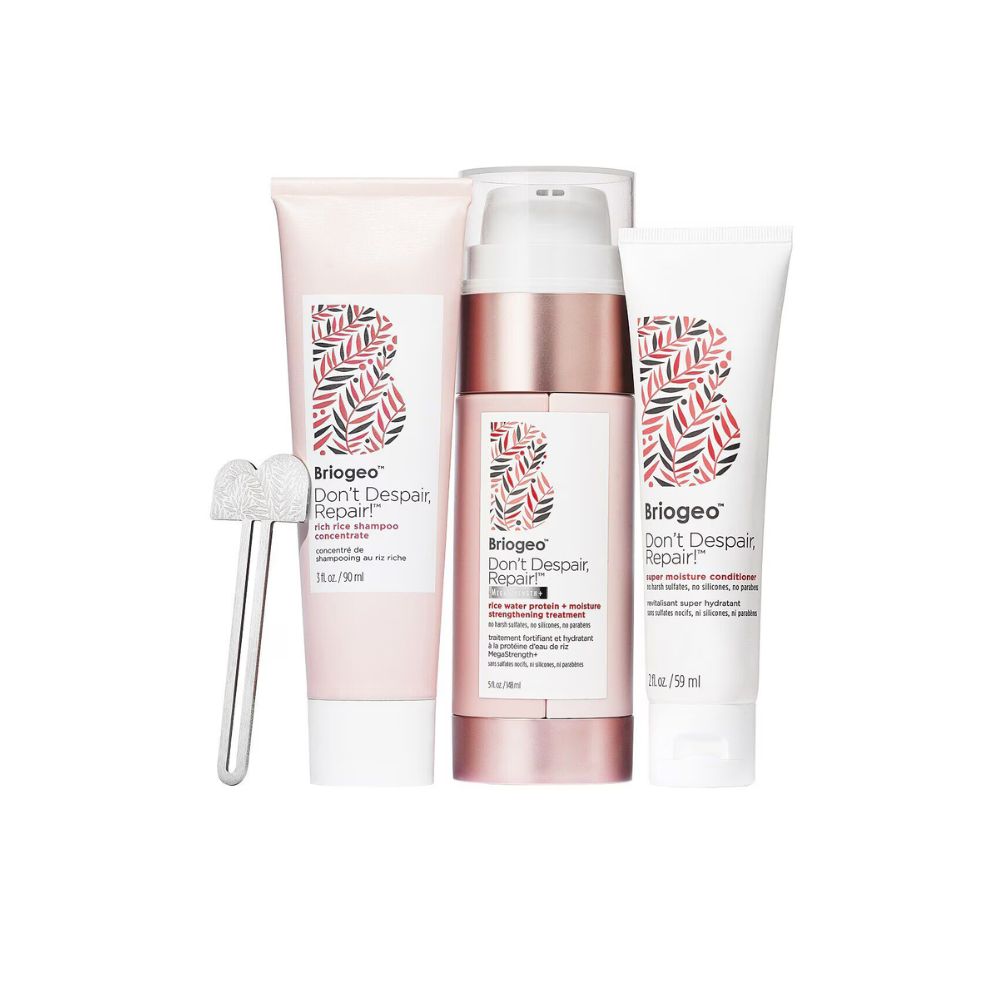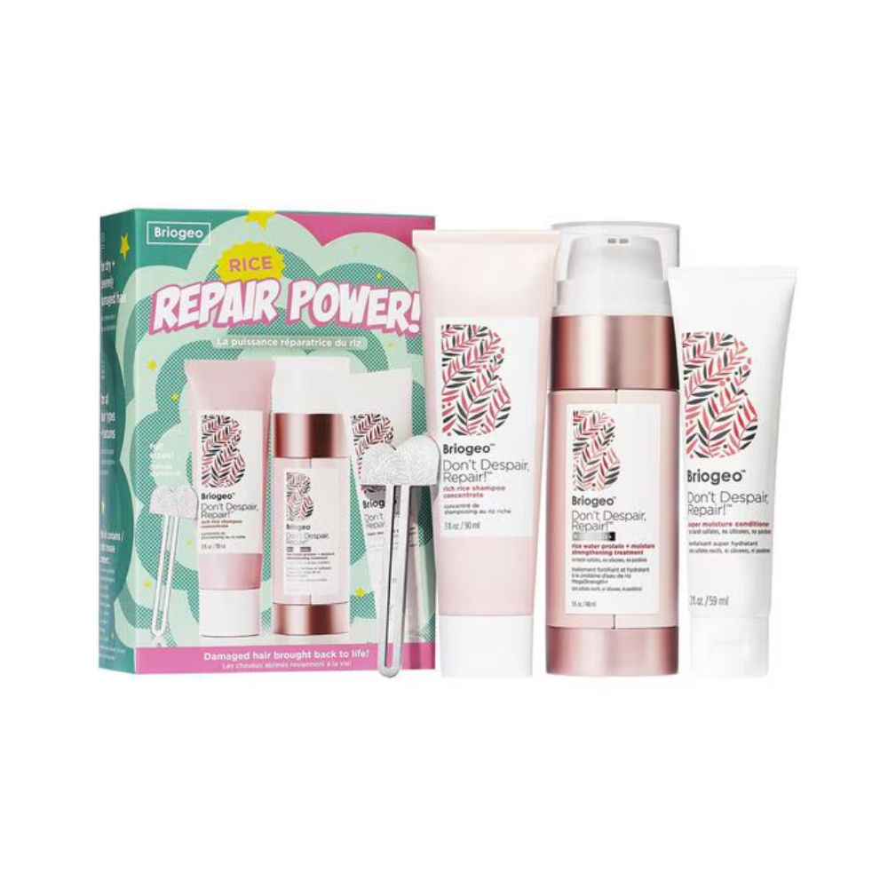Revitalize and strengthen your hair with the Briogeo Don't Despair, Repair!™ Rice Repair Power Set. This curated set features a powerful trio designed to restore moisture, repair damage, and enhance hair strength. Ideal for those with dry, damaged, or weakened hair, the set combines the nourishing properties of rice water and natural oils for healthier, more resilient hair.