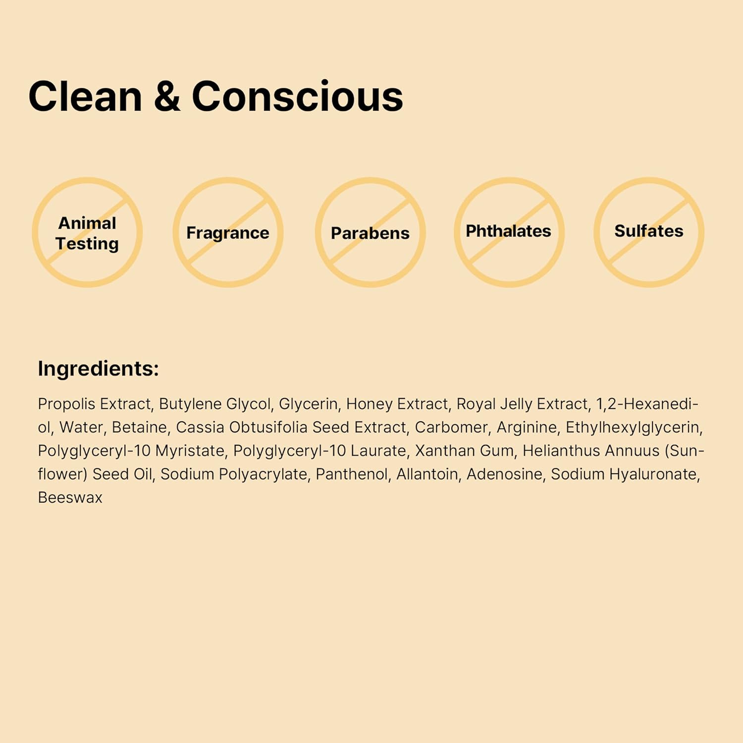 🍯 High Concentration Propolis (87.26%) – Reduces redness, calms irritation, and helps repair stressed skin overnight.
