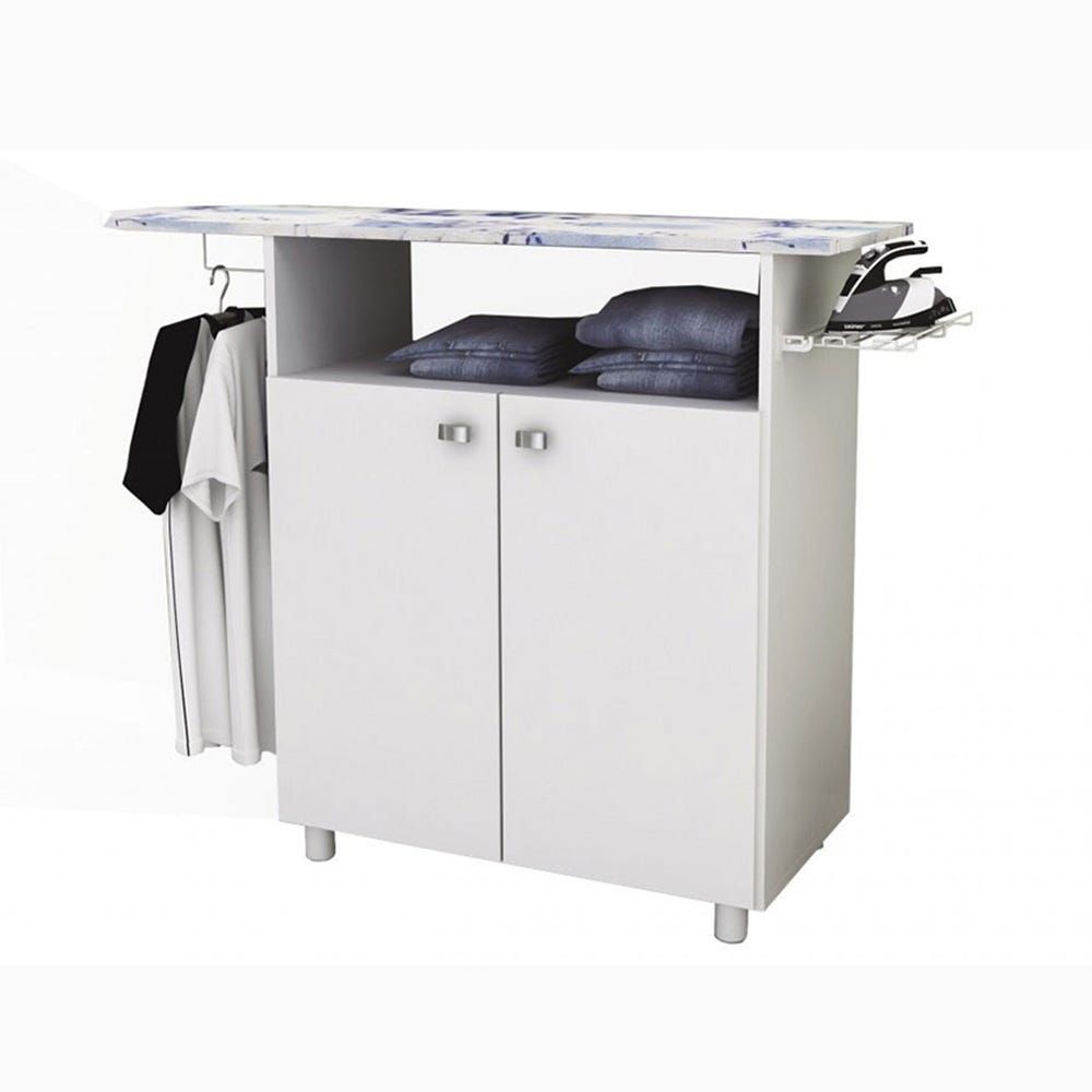 Designed to be more than just an ironing surface, the Cyrine Ironing Board features a multifunctional design that includes plenty of storage. It includes a two-swing-door cabinet with a metal handle, providing ample space to store folded clothes after ironing. This thoughtful design helps keep your laundry space neat and organized.