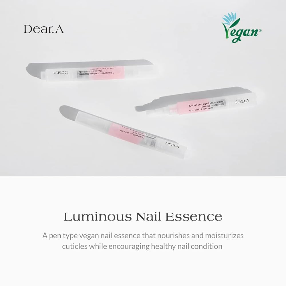 Give your nails a healthy, radiant glow with the Dear.A Luminous Nail Essence, a nourishing treatment designed to restore moisture and shine to weak or brittle nails. Enriched with botanical oils, vitamins, and keratin-boosting ingredients, this lightweight essence strengthens nails, smooths ridges, and promotes natural luminosity. Perfect for daily nail care or post-gel recovery.