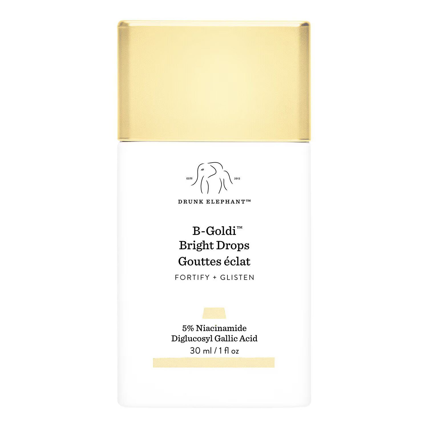 Drunk Elephant B-Goldi™ Bright Drops is a luxurious serum designed to instantly brighten and illuminate the skin while offering long-term skin benefits. Infused with a blend of brightening ingredients like vitamin C and gold-infused peptides, these drops work to even out skin tone, reduce the appearance of dark spots, and add a radiant, golden glow to the complexion. The lightweight formula is perfect for anyone looking to achieve a luminous, healthy-looking skin with a subtle, golden sheen.