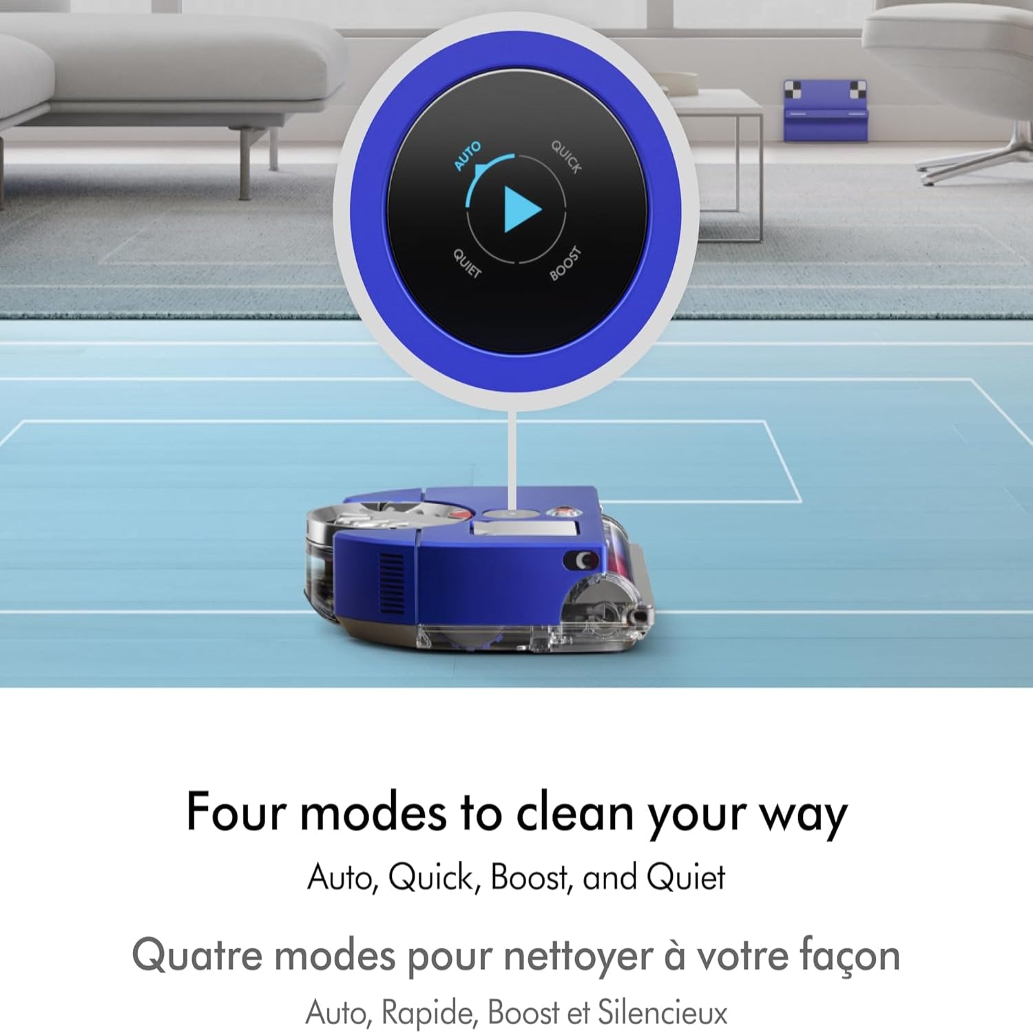 How it works: The Dyson 360° Vision Robot Vacuum combines advanced 360° vision, 26 sensors, and dual-link suspension to navigate your home effortlessly. It can tackle any floor type, automatically adjusting to different surfaces while avoiding obstacles. With powerful suction and a full-width brush bar, it cleans edges and corners with precision, ensuring a thorough clean throughout your home. Plus, the whole-machine HEPA filtration captures 99.99% of particles as small as 0.1 microns***, providing cleaner air.