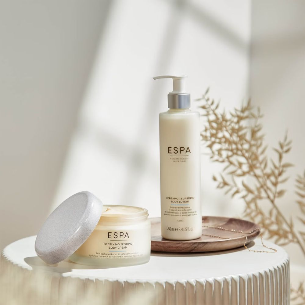 Indulge your skin with the ESPA Deeply Nourishing Body Cream, a luxurious formula designed to hydrate and replenish dry skin. Enriched with a blend of botanical extracts and essential oils, this cream deeply moisturizes while enhancing skin's natural radiance. It absorbs quickly, leaving the skin feeling soft, smooth, and delicately scented. Ideal for daily use, it provides long-lasting hydration, making it a must-have for maintaining a healthy, glowing complexion.