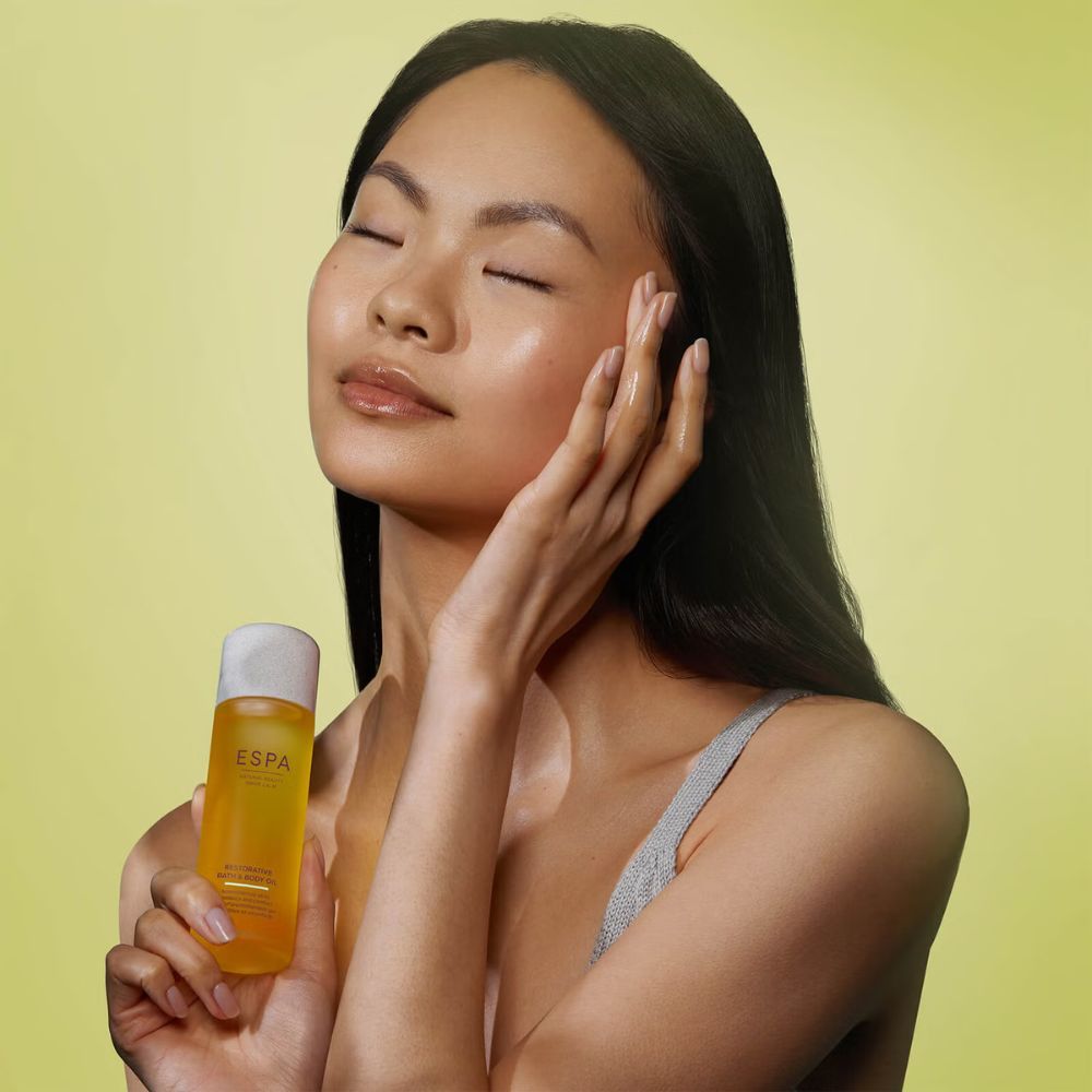 Immerse yourself in a restorative experience with ESPA’s Restorative Bath and Body Oil, the perfect addition to your self-care routine for deeply hydrated skin and a peaceful mind.