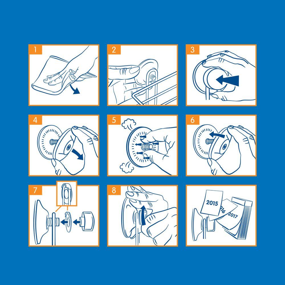 The Everloc system creates a vacuum through a rotary motion of the suction cup. A silicone ring forms an airtight seal around the suction cup, allowing it to adhere firmly to smooth, non-porous surfaces.
