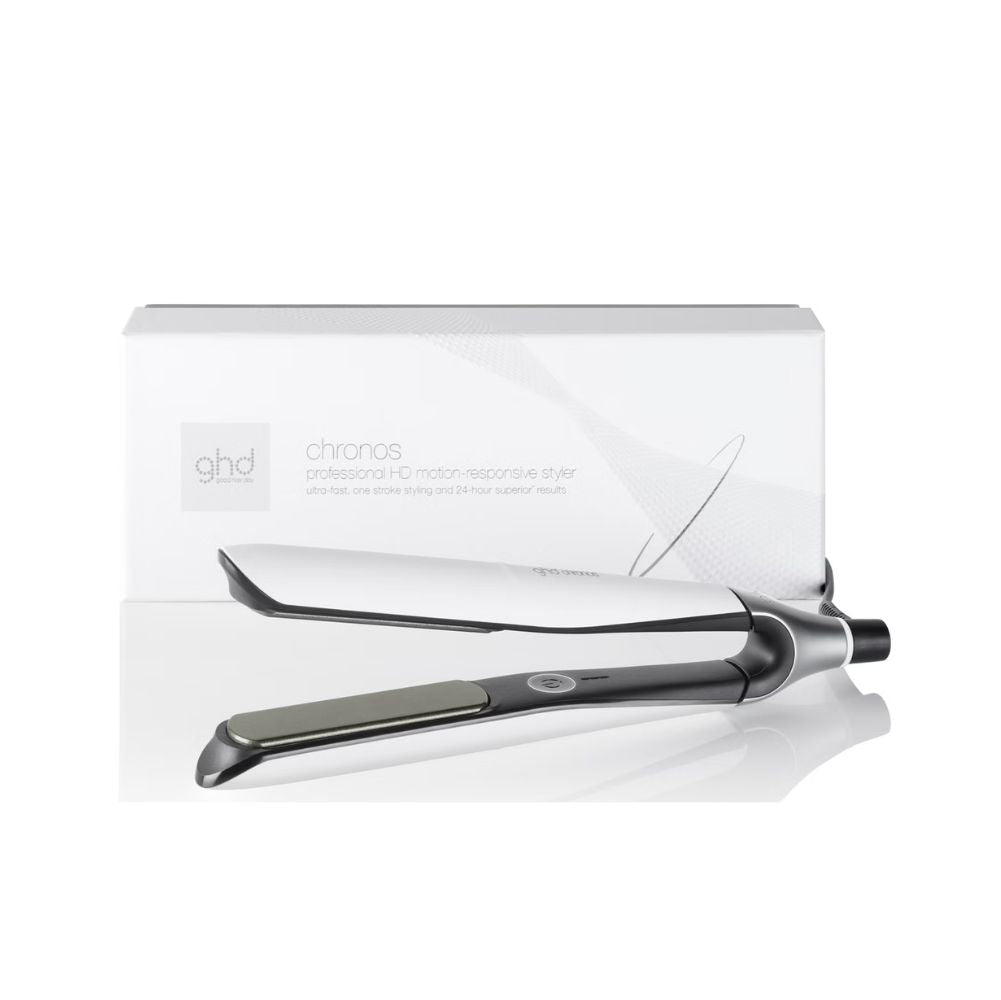 Achieve sleek, glossy hair with the ghd Chronos Hair Straightener in white. Designed with advanced technology, it ensures a professional-level finish with every use. Featuring ceramic floating plates and a sleek, ergonomic design, this straightener glides smoothly through your hair, offering even heat distribution for frizz-free, shiny results. The ghd Chronos is perfect for those seeking a high-performance styling tool that can handle both straightening and creating soft curls, all while maintaining the health of your hair.