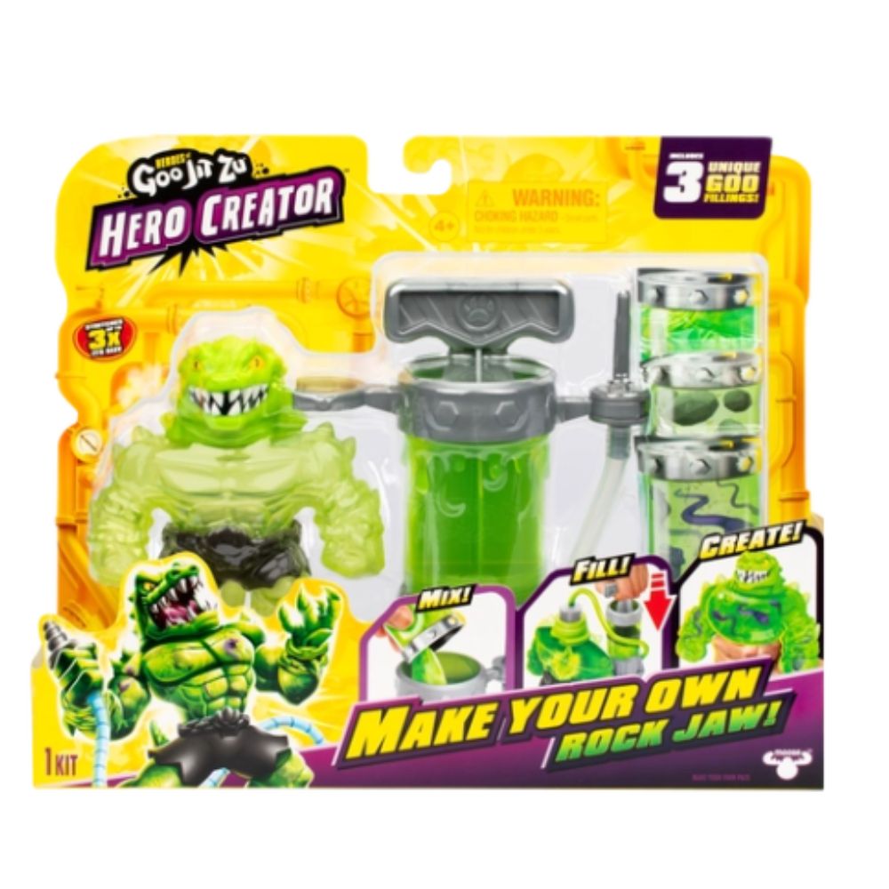 Get ready for epic battles with HGJZ HCRTR MYO PK - Rock Jaw, the fierce and powerful alligator-inspired hero from Goo Jit Zu! Rock Jaw boasts incredible strength and a tough, goo-filled body, allowing him to stretch, squish, and twist while returning to his original form. Designed with reptilian details and vibrant colors, this figure is perfect for action-packed play. Rock Jaw’s durable construction ensures he’s ready to take on any challenge, whether it’s battling other heroes or defending his turf.