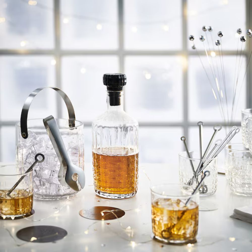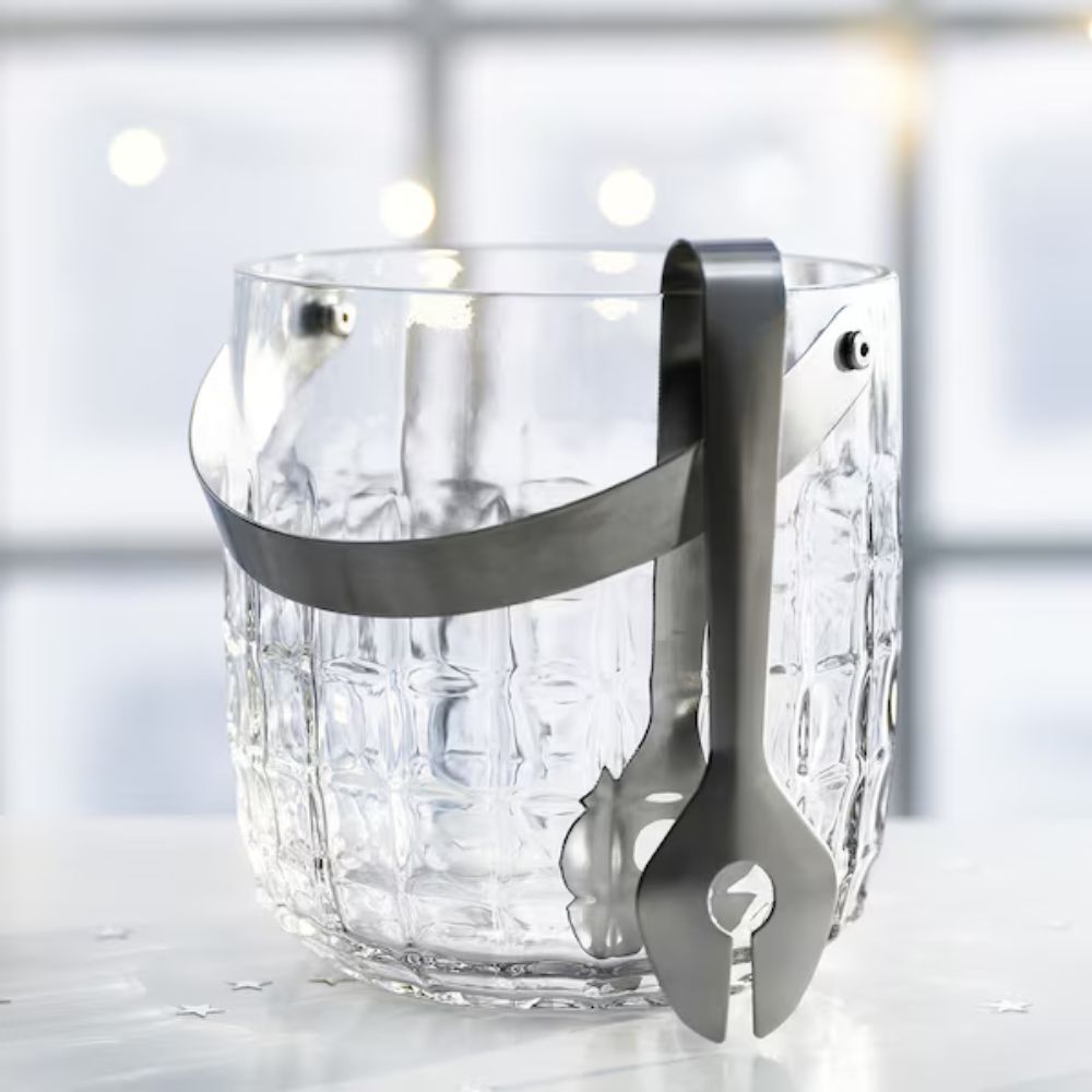 The IKEA FRÖJDA Ice Bucket with Tongs is the perfect addition to your home bar or dining setup. Crafted from clear glass with a stainless steel lid and tongs, it offers a sleek and modern design while keeping your ice cubes fresh and easily accessible. Whether you're hosting a cocktail party, enjoying a casual drink, or serving guests at a dinner gathering, this ice bucket ensures style and convenience.