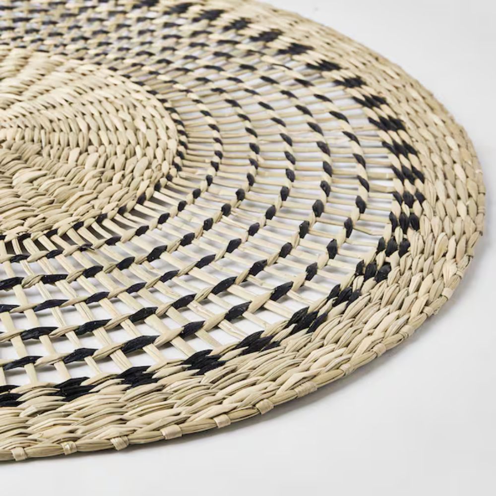 Bring a touch of nature to your dining space with the IKEA PENNFISK Place Mat, handcrafted from natural sedge. Measuring 37 cm in diameter, this round placemat is both stylish and functional, protecting your table from heat, spills, and scratches. Its organic texture and warm tones make it a versatile addition to any dining setting, perfect for casual meals or special occasions.