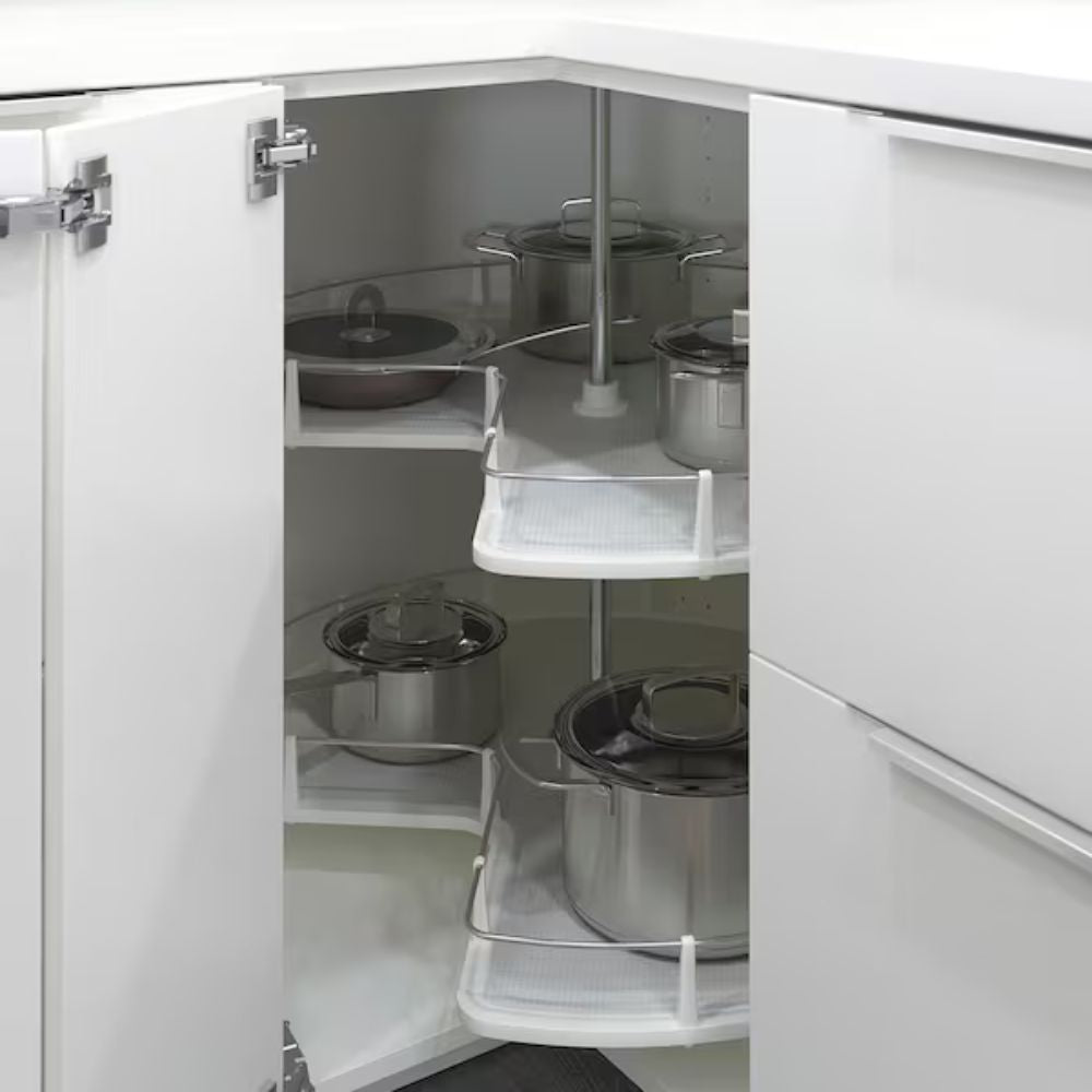 Make the most of your corner cabinet space with the IKEA UTRUSTA Corner Base Cabinet Carousel. Designed for 88 cm base cabinets, this rotating shelf system provides easy access to your pots, pans, and kitchen essentials, eliminating the hassle of reaching into deep corners.