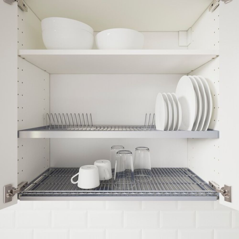 Maximize your kitchen space with the IKEA UTRUSTA Dish Drainer, designed to fit seamlessly into 80x35 cm wall cabinets. This practical drying rack allows you to air-dry plates, cups, and utensils directly in your cupboard, keeping your countertops clutter-free while ensuring optimal ventilation.