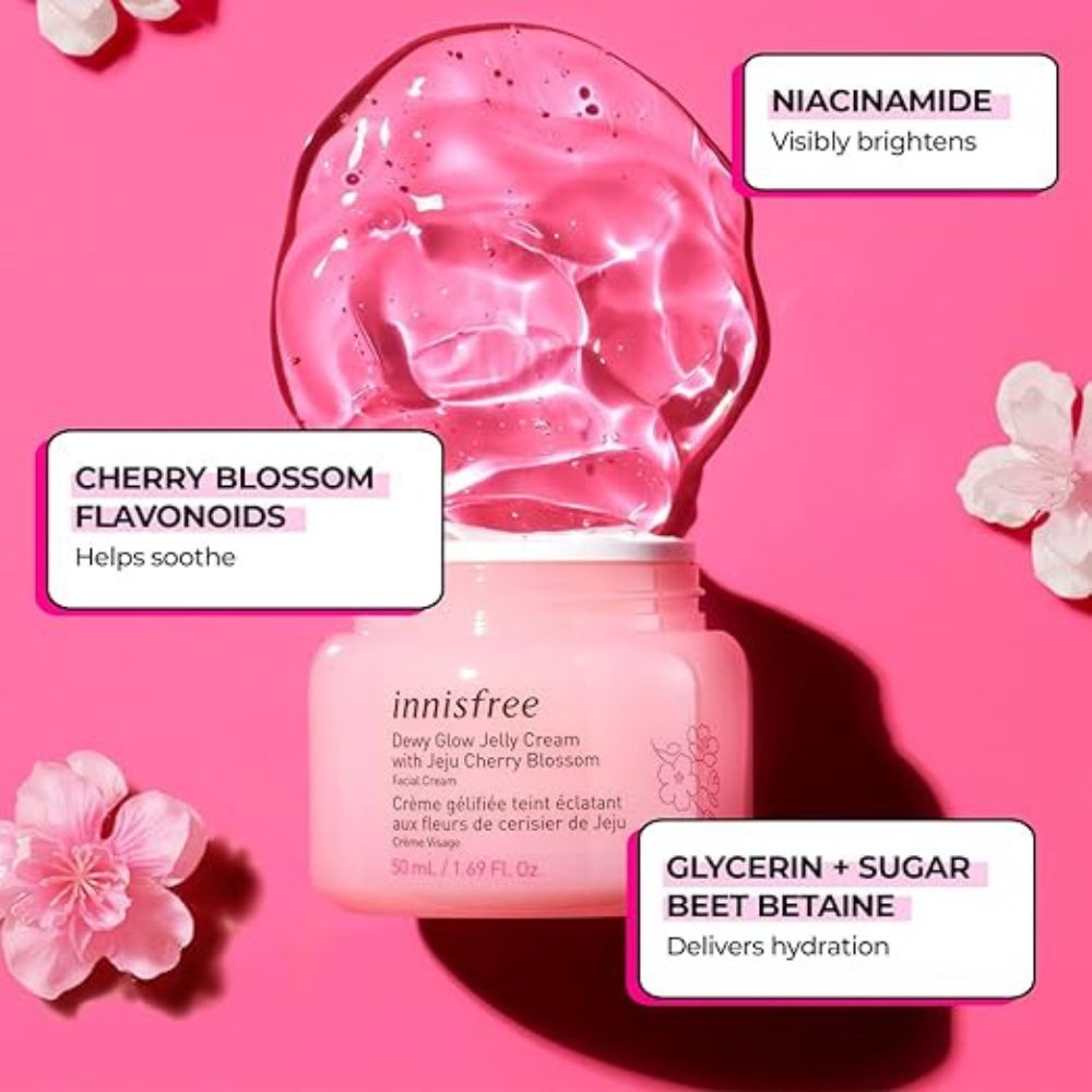 Innisfree's Jeju Cherry Blossom Jelly Cream brings the vibrant beauty of Jeju Island to your skincare routine. Formulated with fresh cherry blossom extracts, this light, jelly-textured cream hydrates and brightens your skin while providing a soft, dewy finish. It’s the perfect daily moisturizer to revitalize dull, tired skin with a burst of hydration and a refreshing floral scent.