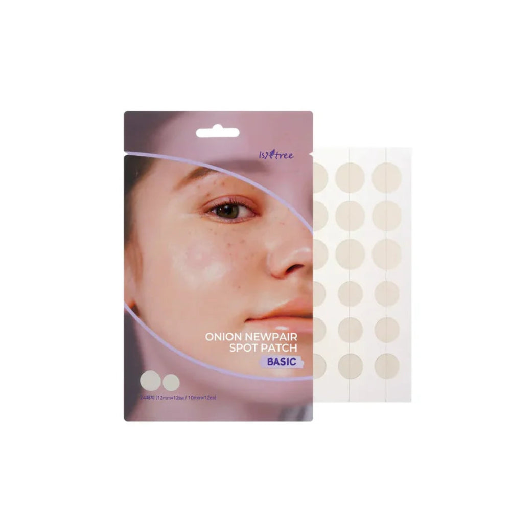 Target blemishes effectively with Isntree - Onion Newpair Spot Patch Basic (24 Patches) — your go-to solution for fast, hygienic acne care. These hydrocolloid patches absorb impurities, protect wounds from external irritants, and promote faster healing while preventing scarring.