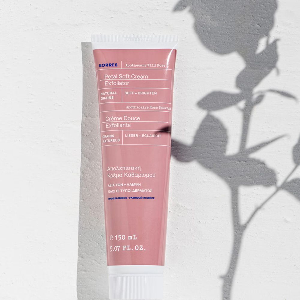 Achieve a glowing complexion with the KORRES Apothecary Wild Rose Petal Soft Cream Exfoliator. This gentle, dual-action exfoliator is enriched with the hydrating power of wild rose oil, a natural source of fatty acids and vitamin C, offering brightening and skin-softening benefits. Perfect for daily use, it combines natural rice grains and cherry powder to delicately buff away dead skin cells and impurities, revealing a smoother, more radiant appearance.
