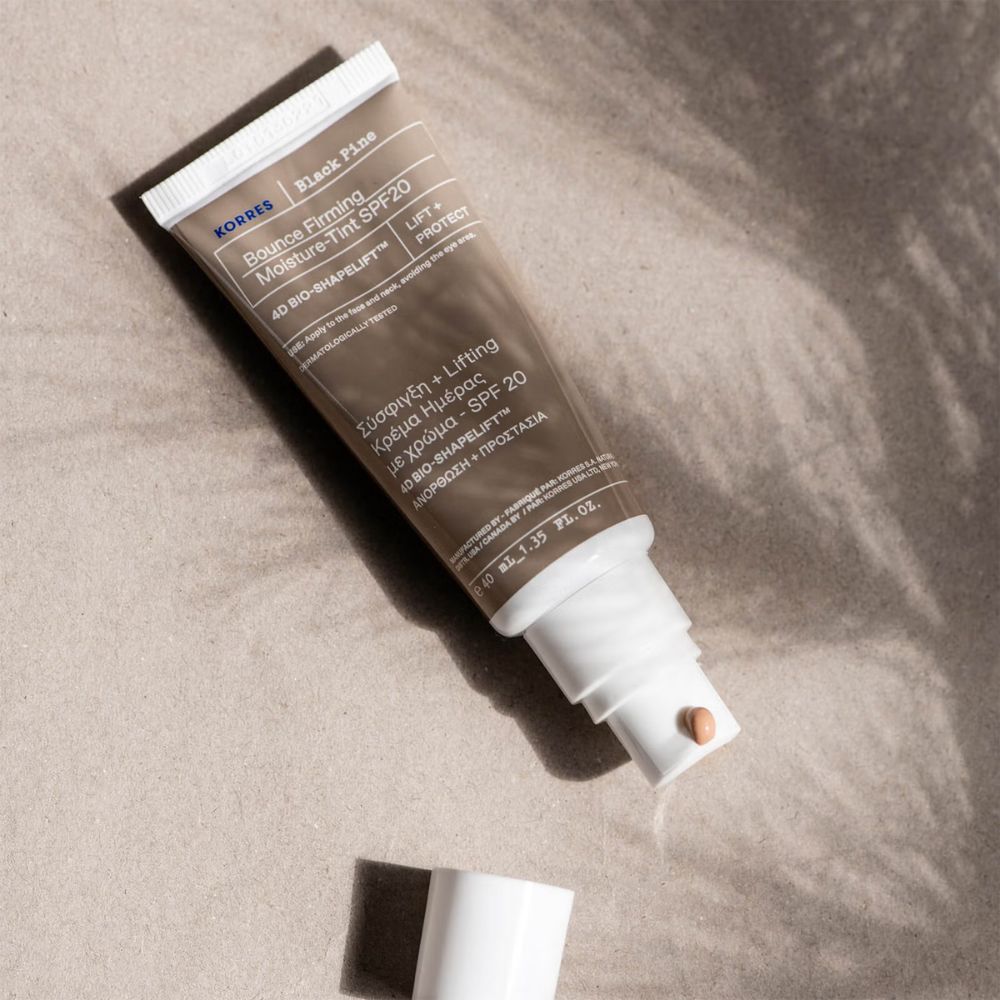 Achieve youthful, radiant skin with Korres Black Pine 4D BioShapeLift™ Bounce Firming Tinted Moisturiser. Infused with advanced anti-aging 4D BioShapeLift™ technology, this lightweight tinted moisturizer combines skincare and makeup to firm, smooth, and lift your skin while evening out your complexion. The addition of SPF 20 offers daily sun protection, making it an essential multitasker for modern skincare routines.
