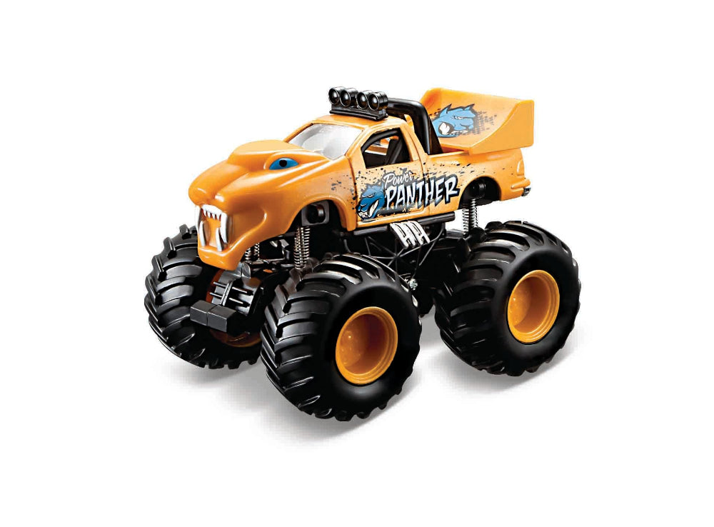 Maisto FM Earth Shockers bring big excitement in a compact size. These rugged 4.5-inch monster trucks are built with a powerful pull-back motor that launches them into action, perfect for high-speed races and off-road adventures. Designed with a bold look, oversized rubber tires, and spring suspension, they’re made to conquer rough terrain and keep the fun going.