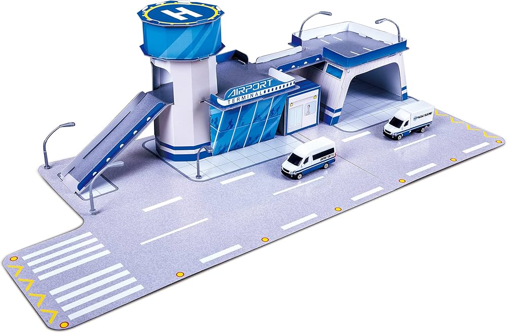 The Maisto Fresh Metal Build N Play Set – Airport Terminal is the perfect blend of creativity and action for young aviation lovers. This interactive playset allows kids to assemble their very own airport scene, including a terminal, hangar, control tower, and runway – all made from sturdy laminated cardboard for hours of pretend play.