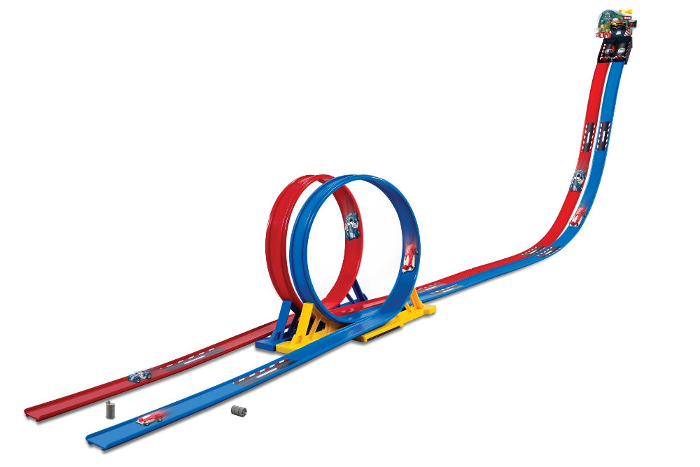 Dual-Lane Track: Features 5.4 meters of track with twin loops for competitive racing.