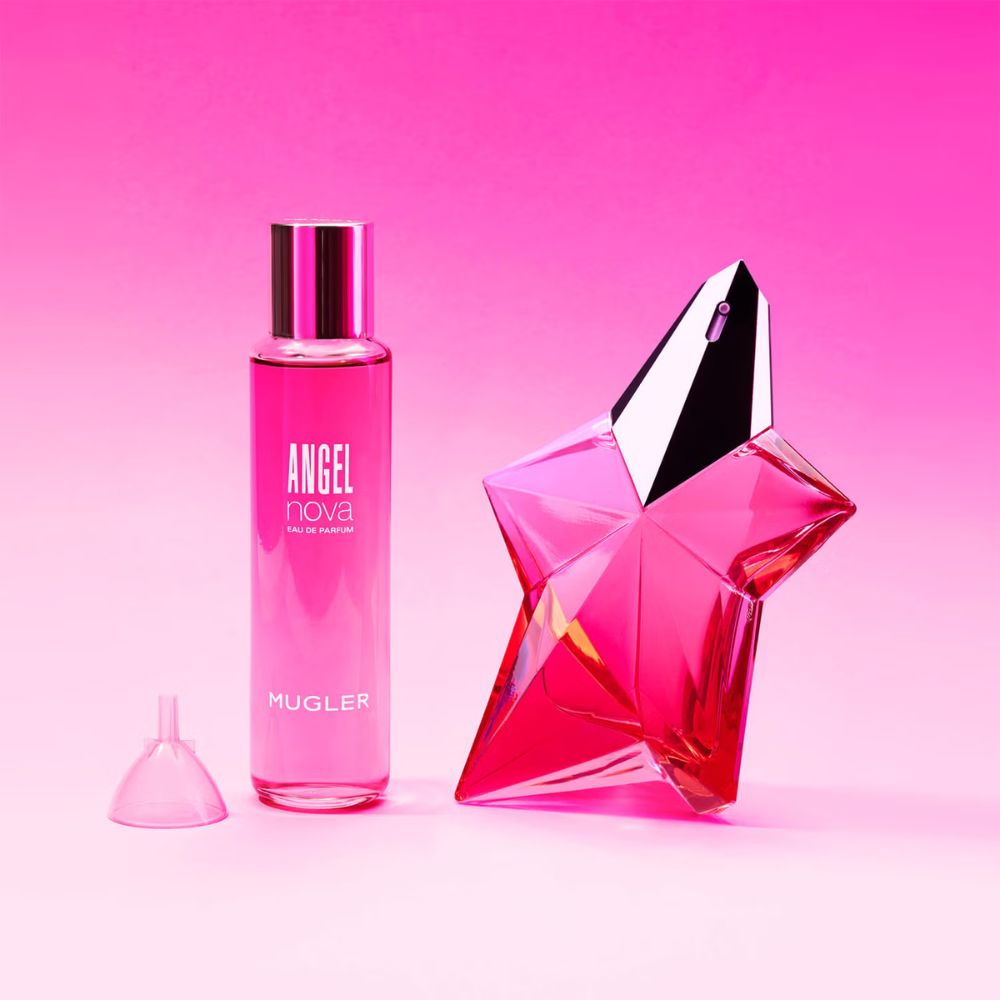 MUGLER Angel Nova Eau de Parfum is a captivating and daring fragrance, reinventing the iconic Angel with a modern fruity-floral twist. Designed for the fearless, confident woman, this scent blends radiant fruity notes, a sensual floral heart, and a rich woody base. The refillable star-shaped bottle represents empowerment and sustainability, making this fragrance a luxurious and conscious choice.