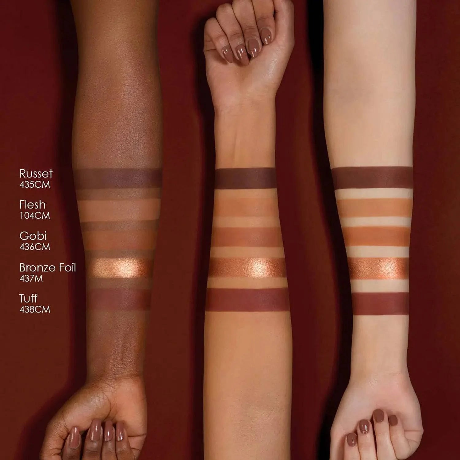 The palette’s rich shades of toasted browns and nude beiges are complemented by a stunning metallic bronze, creating a versatile color story that flatters a wide range of skin tones. The creamy matte shades glide on smoothly, blending effortlessly for a seamless application, while the metallic bronze delivers an ultra-pigmented lustre for added dimension and shine.
