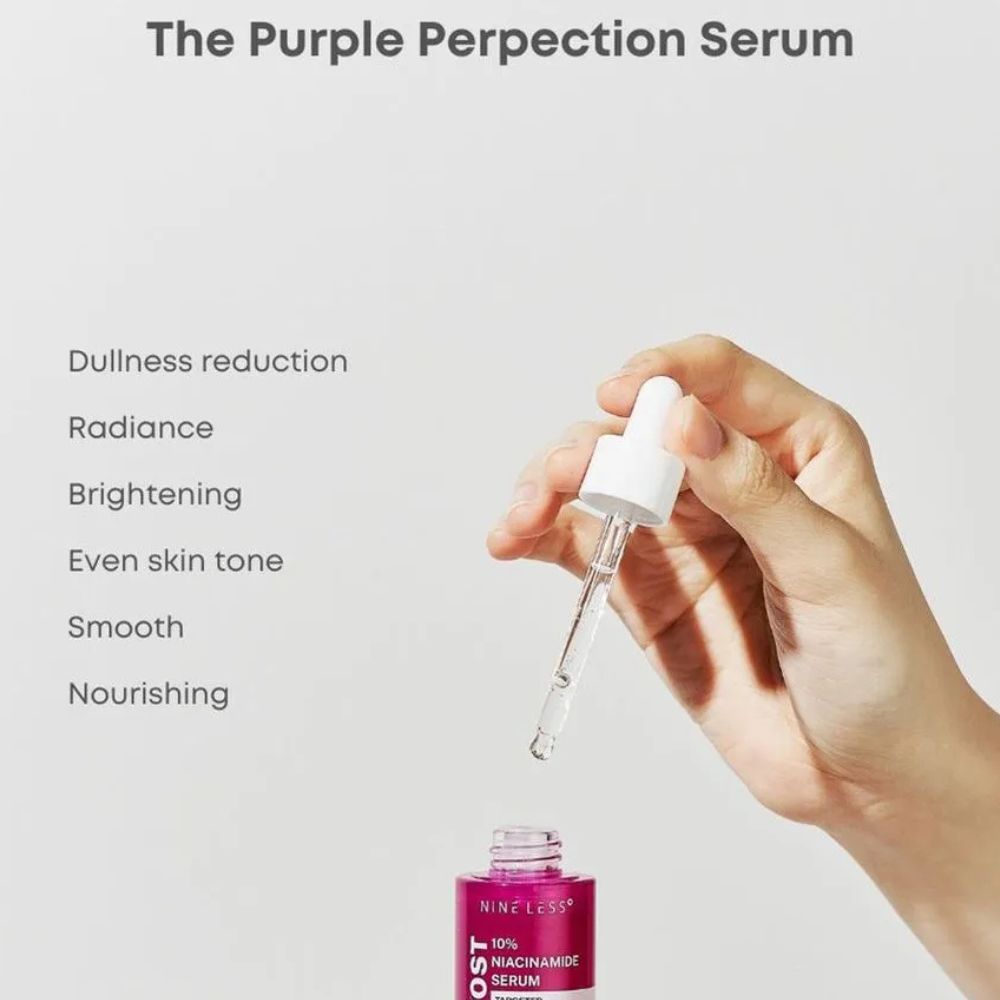 The NINELESS B-Boost 10% Niacinamide Serum is a powerful yet gentle skincare essential formulated to brighten, balance, and improve skin texture. Enriched with 10% niacinamide, this serum works effectively to fade dark spots, control excess sebum, and strengthen the skin barrier. Its lightweight, fast-absorbing formula ensures deep hydration without clogging pores, making it suitable for all skin types, including oily and sensitive skin.
