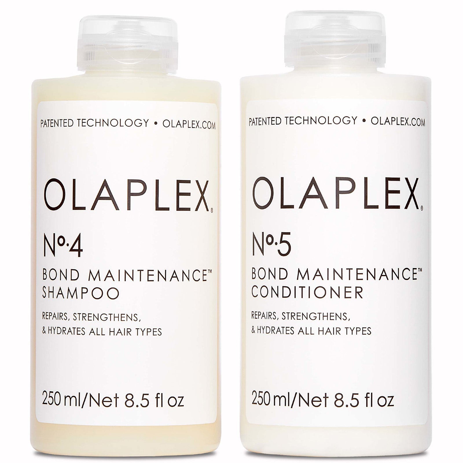 Say hello to your hair's new favourite double act... AKA OLAPLEX's Shampoo and Conditioner Bundle. Powered by the brand's patented Bond Building Technology, this pairing is designed to rebuild the damaged bonds in your hair. Confused? Let us explain; in short, they work to strengthen your tresses, prevent breakage and repair split ends. The No. 4 Bond Maintenance Shampoo is a colour-safe hero, whereas the No. 5 Bond Maintenance Conditioner is a highly concentrated reparative treat for your hair. We're obtressed. Contents: No. 4 Bond Maintenance Shampoo (250ml) No. 5 Bond Maintenance Conditioner (250ml)