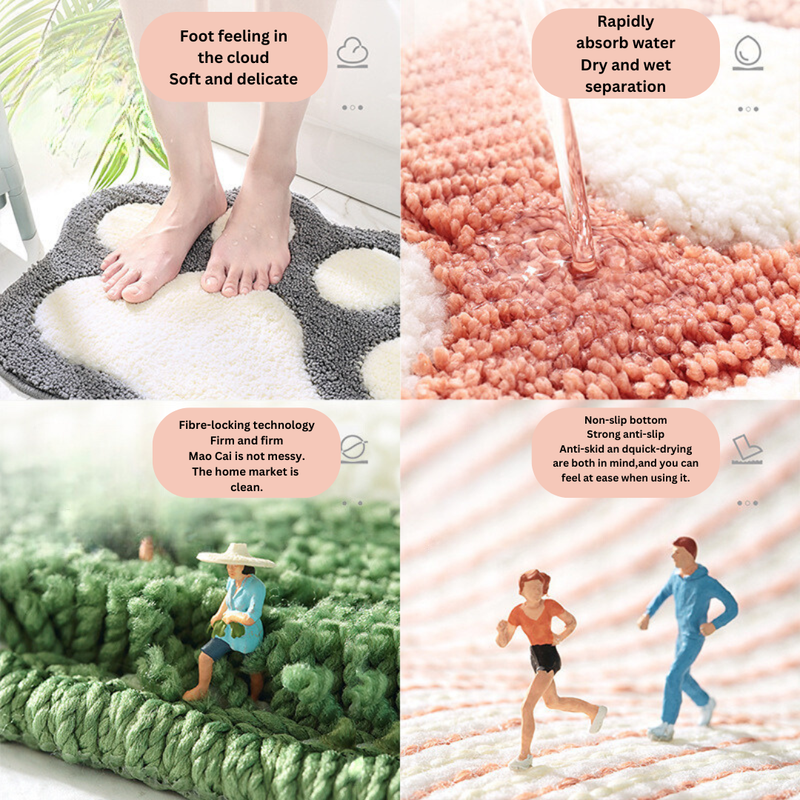 This multi-purpose carpet can be used in various settings such as the kitchen, bathroom, toilet, hallway, doormat, or bedroom, adding a stylish flair while serving practical purposes. It is designed to soak up water and keep your floors dry, ensuring that mildew and mold are kept at bay. Plus, its anti-slip bottom ensures stability, keeping the rug in place and ensuring the safety of your family.