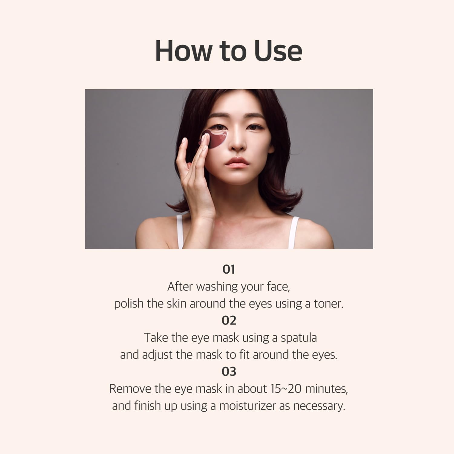 After cleansing and toning, place patches under the eyes or on desired areas.