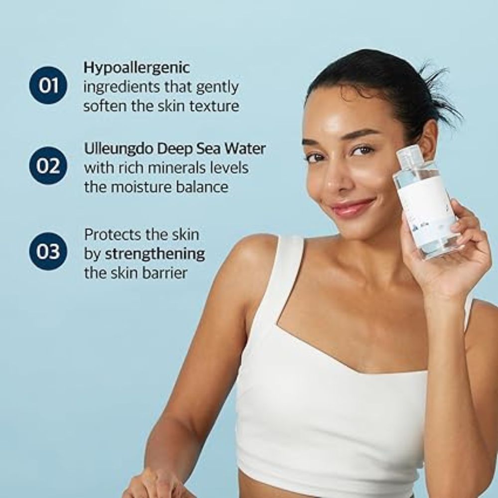 The ROUND LAB 1025 Dokdo Toner is a refreshing, deeply hydrating toner enriched with ultra-pure deep sea water from Korea’s Dokdo Island. Packed with minerals like magnesium, calcium, and zinc, this toner replenishes moisture while gently exfoliating dead skin cells with mild PHA (Polyhydroxy Acids). Its low-irritation formula soothes sensitive skin, balances oil levels, and preps your skin for better absorption of serums and moisturizers. Ideal for all skin types, especially dry and sensitive skin, this toner promotes a smooth, dewy complexion.