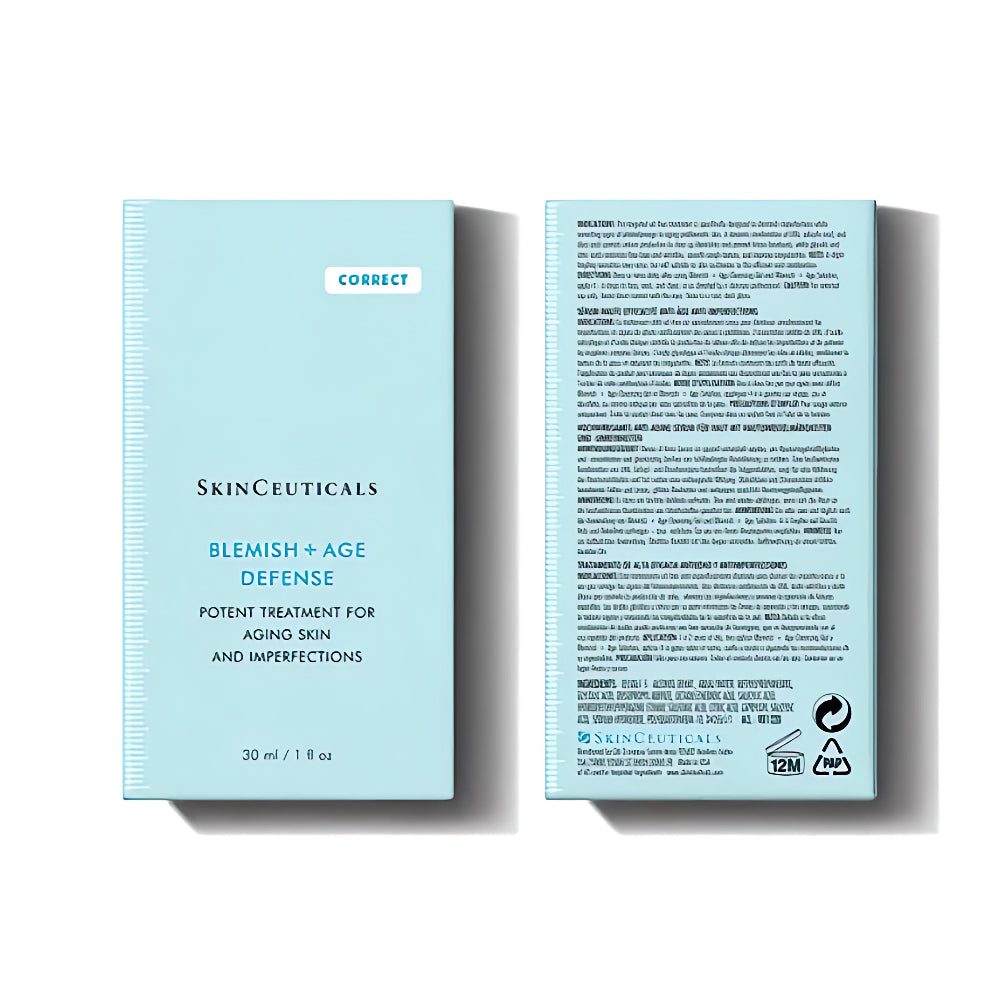Clear breakouts and combat signs of aging with SkinCeuticals Blemish + Age Defense. This advanced, oil-free serum is specially formulated for acne-prone, mature skin, helping to reduce blemishes, refine pores, and smooth fine lines for a clearer, more youthful complexion.