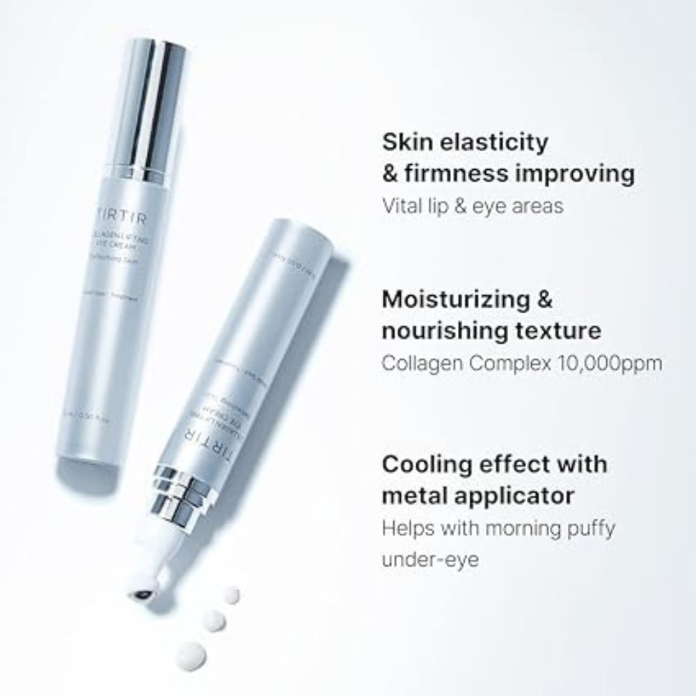 Restore firmness, hydration, and radiance to your delicate eye area with the TIRTIR Collagen Lifting Eye Cream. Infused with powerful collagen, peptides, and hyaluronic acid, this luxurious cream helps reduce fine lines, wrinkles, and puffiness while improving skin elasticity. Its lightweight yet deeply nourishing formula absorbs quickly, delivering intense hydration without feeling greasy. Perfect for all skin types, this eye cream brightens, firms, and revitalizes tired-looking eyes for a youthful, refreshed appearance.