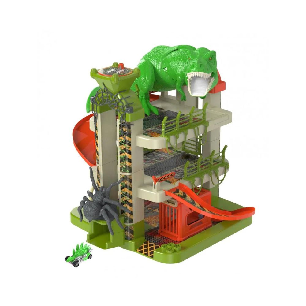 The TZ B/M Monster Mayhem playset is a thrilling toy garage experience that will ignite your child's imagination! This three-level playset features a monster-themed design, including a fearsome T-Rex that kids can race their car into, and a skull that adds an element of surprise. With a manually operated lift and ramps to zoom down, the playset provides endless fun and adventure for young drivers.
