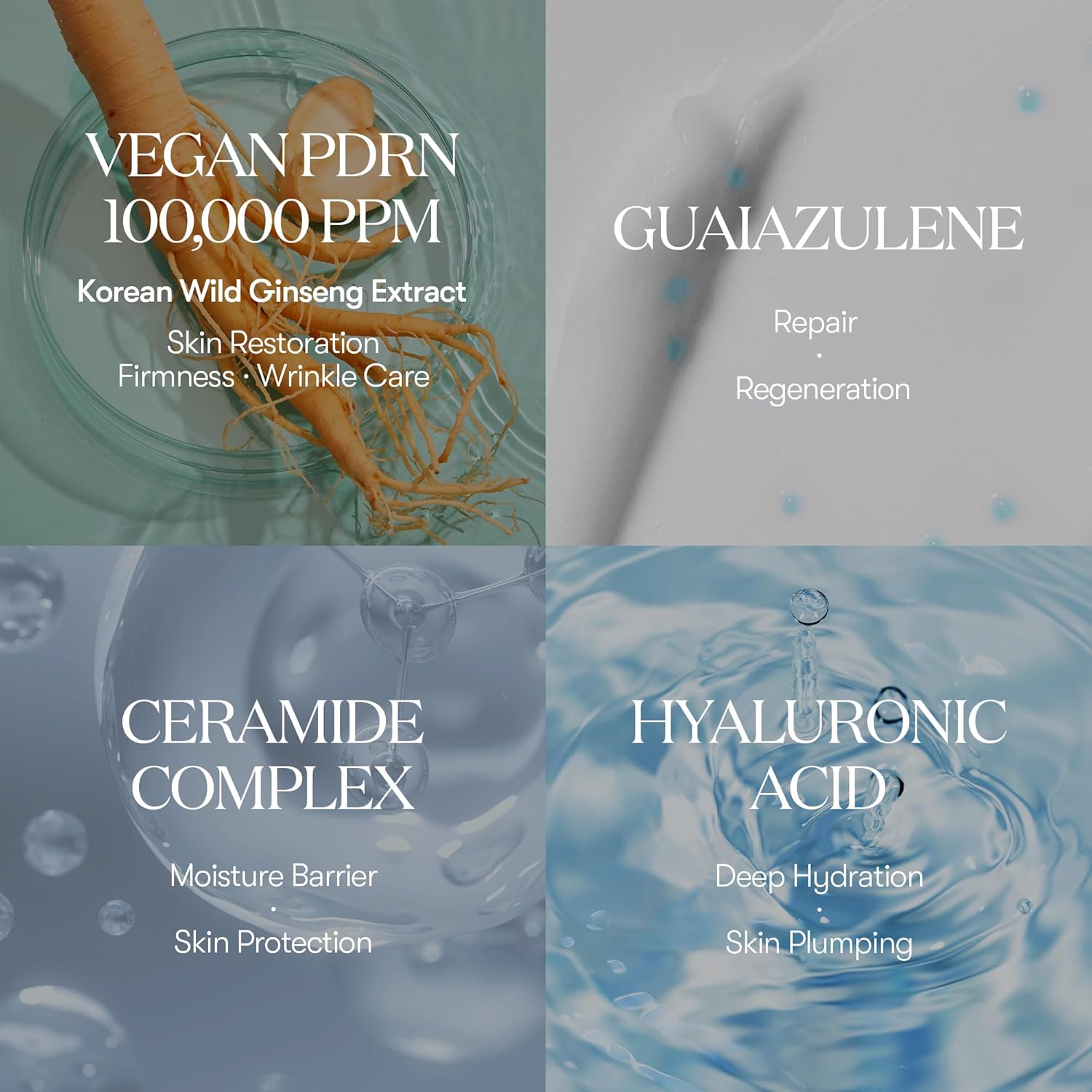 Vegan 100,000 PPM PDRN – Derived from Korean wild ginseng, this plant-based alternative to fish-derived PDRN boosts skin renewal, elasticity, and firmness with enhanced stability and absorption.