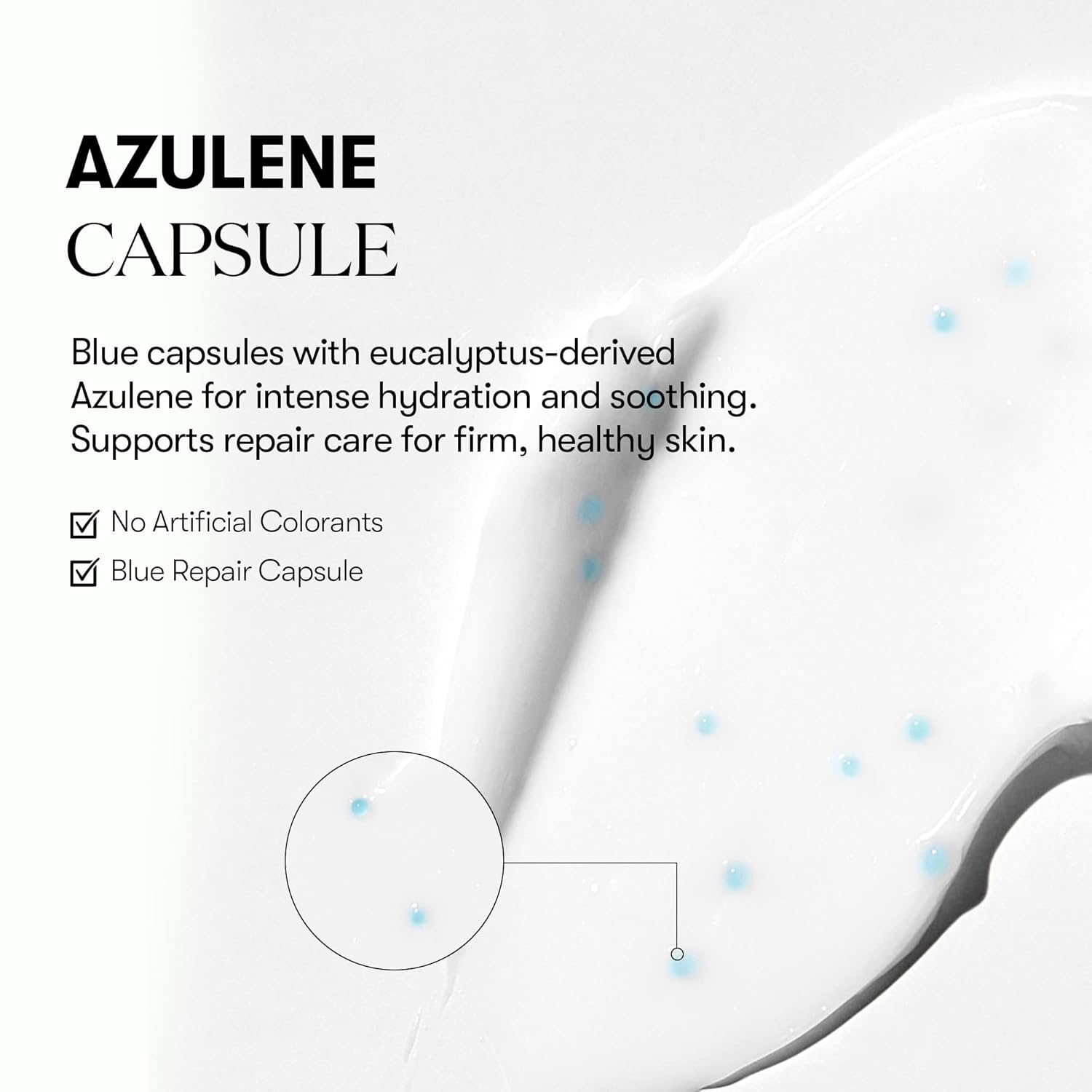 Blue Azulene Capsules – Infused with azulene from eucalyptus, these soothing capsules burst on contact to calm, hydrate, and strengthen your skin barrier.