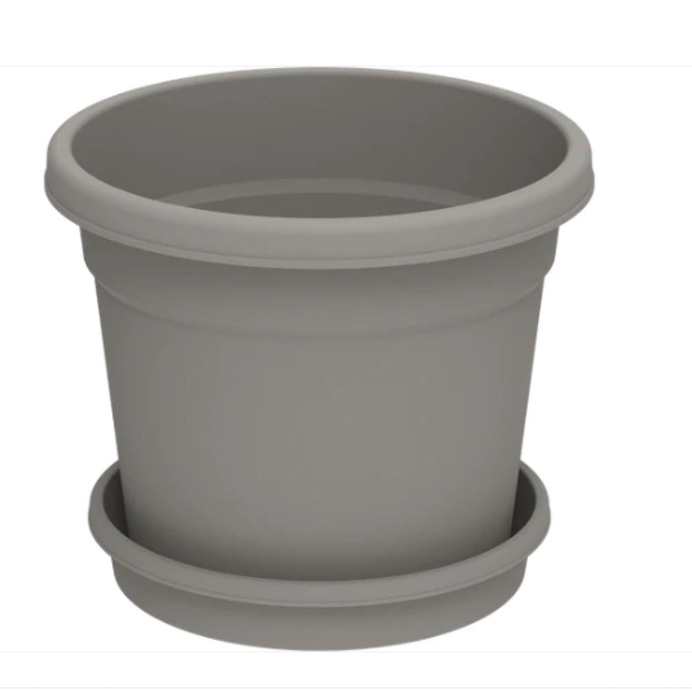 Upgrade your plant display with the 12" Round Flowerpot with Tray, combining style, practicality, and durability for a beautiful addition to any indoor or outdoor space.