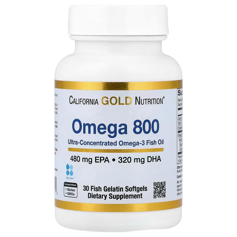California Gold Nutrition® Omega 800 Ultra-Concentrated Omega-3 Fish Oil is a convenient daily supplement that makes it easy to add more omega-3s to your diet, as it is specifically designed for individuals looking for an ultra-concentrated, once-daily softgel.