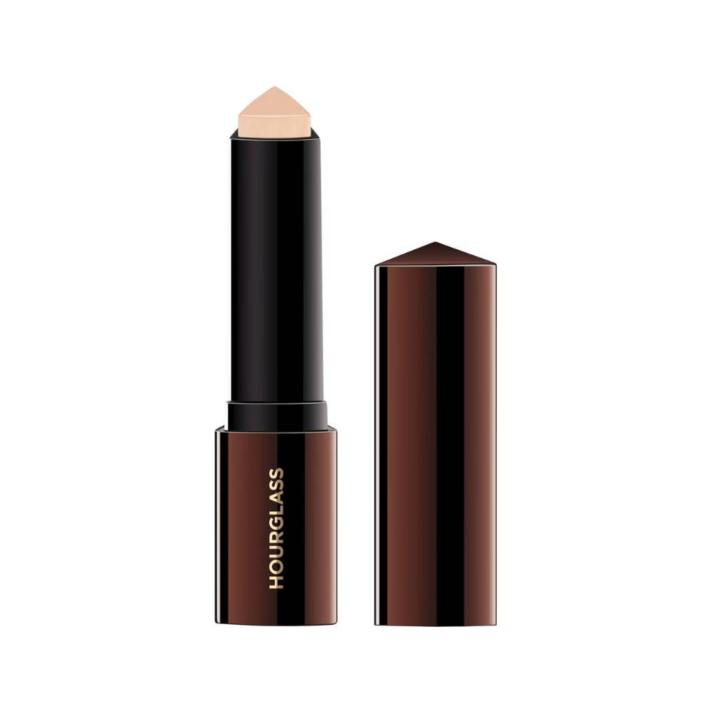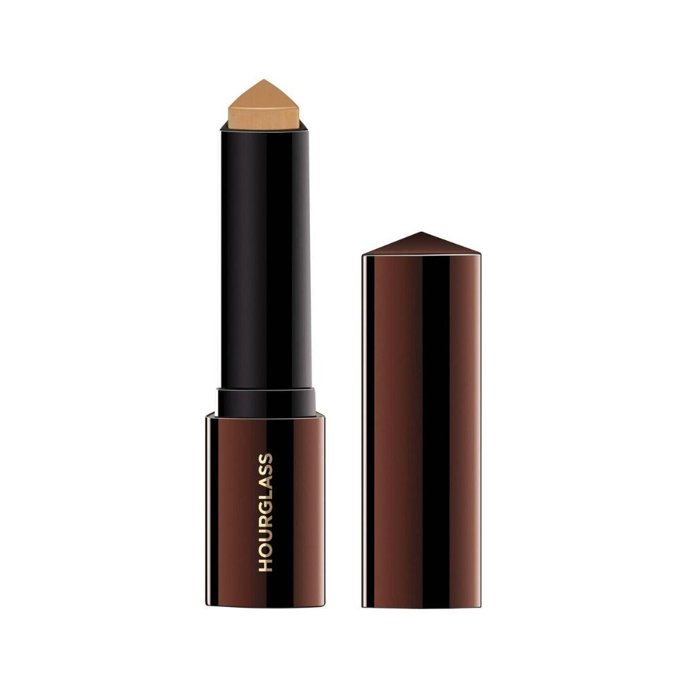 Achieve a flawless, second-skin finish with the HOURGLASS Vanish™ Seamless Finish Foundation Stick. This innovative foundation combines the coverage of a concealer, the fluidity of a liquid, and the weightlessness of a powder in a convenient stick format. With a highly concentrated, long-wearing formula, it provides instant full coverage with a natural, seamless look. The unique triangular bullet allows for precise application, making it perfect for contouring, highlighting, and all-over coverage.